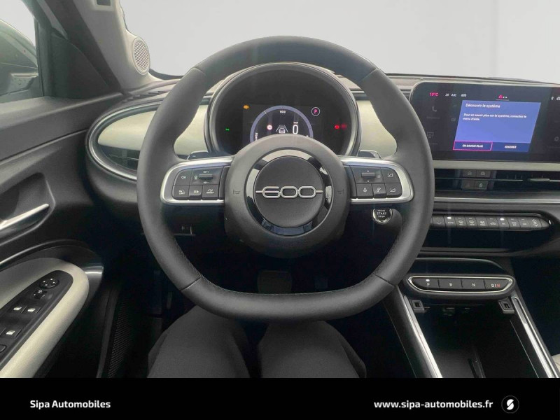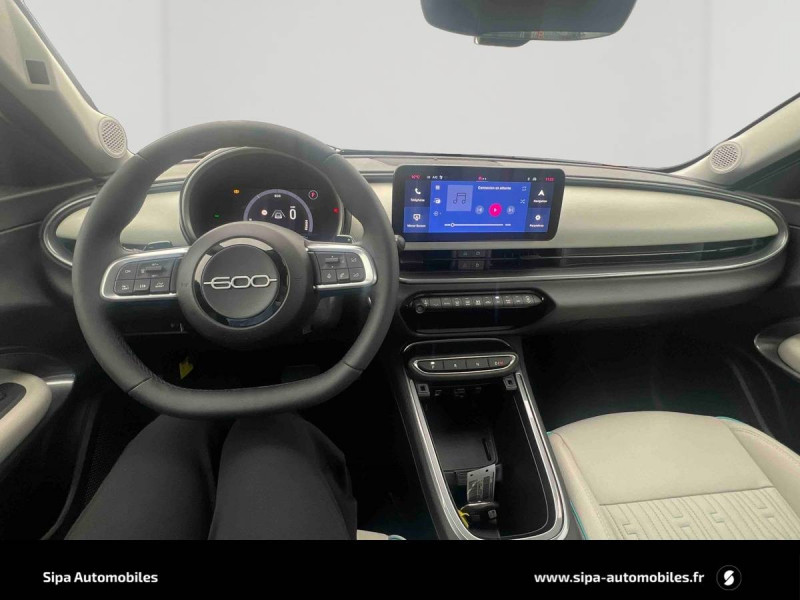 3ème appuie-tête AR / Boîte de vitesse automatique 6 rapports / Caméra de recul 180° avec lignes directrices dynamiques / Canule d'échappement côté droit / Chargeur USB de type A et USB de type C / Chargeur USB de type C à l'AR / Chromothérapie (Lumière d'ambiance intérieure) / Clignotants à LED / Combiné d'instrumentation numérique 7'' / Commutation feux de route/croisement / Conduite autonome de niveau 2 / Connectivité Smartphone Apple CarPlay et Android Auto sans fil / Console centrale avec pré-disposition couvercle magnétique / Contrôle de la traction (TCS) / Freinage autonome d'urgence avec détection de piéton et de cycliste / Frein à main électrique / Hayon à ouverture électrique mains libres / Intervalle de maintenance 25 000 km ou 1 an / Kit anti-crevaison Fix&Go / Logo "HYBRID" sur le hayon de coffre / Ouverture sans clé / Pack Hiver Sièges AV chauffants, Pare-brise AV chauffant (uniquement essuie-glace) / Pare-soleil avec miroir de courtoisie sans éclairage / Planche de bord couleur Ivoire avec contour noir brillant / Plancher de coffre modulable / Poches aumonières au dos des sièges AV / Poignées de porte intérieures chromées / Projecteurs antibrouillard à LED avec fonction de virage / Projecteurs full LED 'Infinity' (AV et AR) / Rappel du port de la ceinture de sécurité (1ère et 2ème rangées) / Réglage lombaire du siège conducteur et fonction massage / Rétroviseur intérieur photochromatique / Sellerie premium bicolore soft touch couleur plomb et ivoire avec insert logo 600 / Services connectés UConnect Services / Siège conducteur à réglage électrique à 6 positions / Siège passager à réglage manuel 6 positions / Système ISOFIX siège AV passager et banquette AR / Système Uconnect 10,25" / Tunnel central en position basse / Volant soft touch multifonctions avec détail chromé