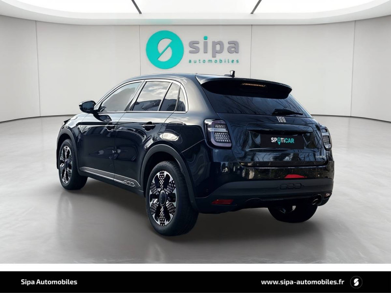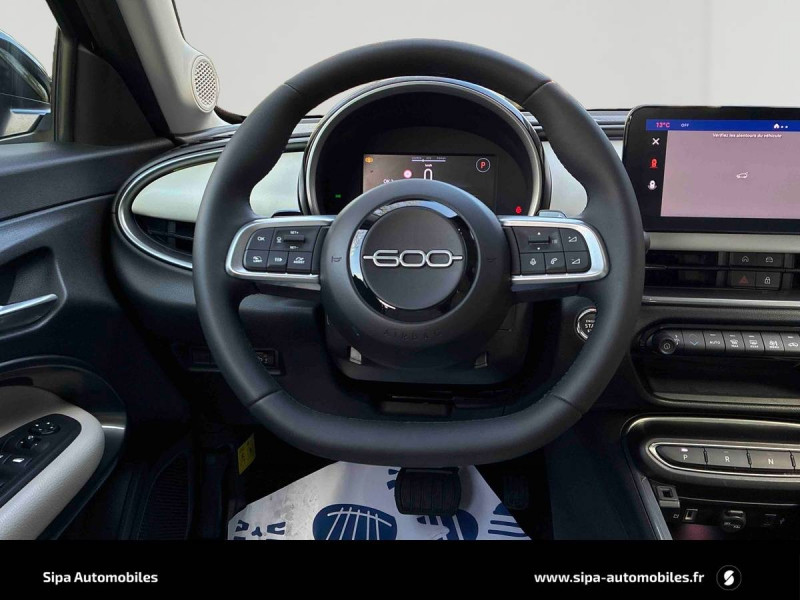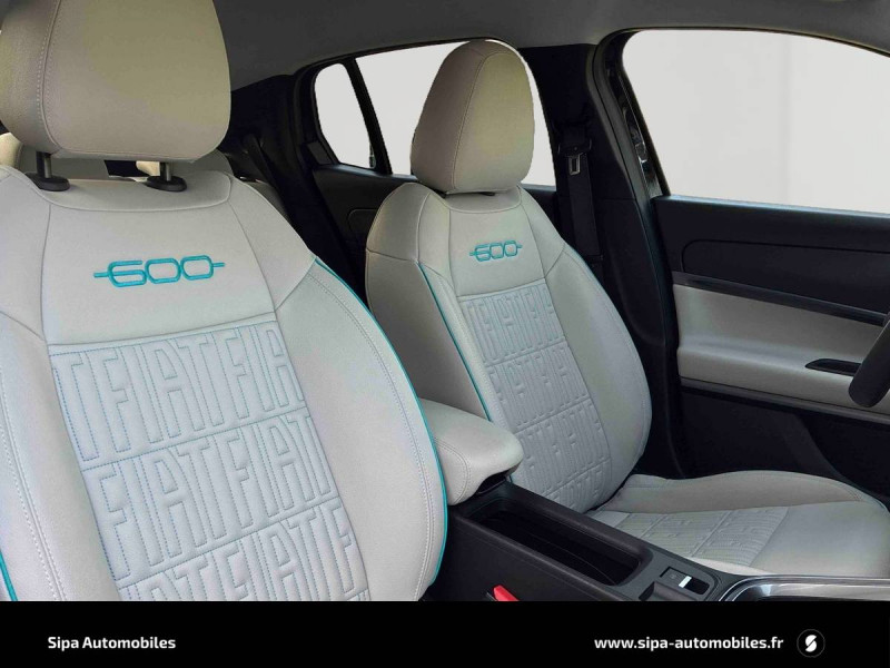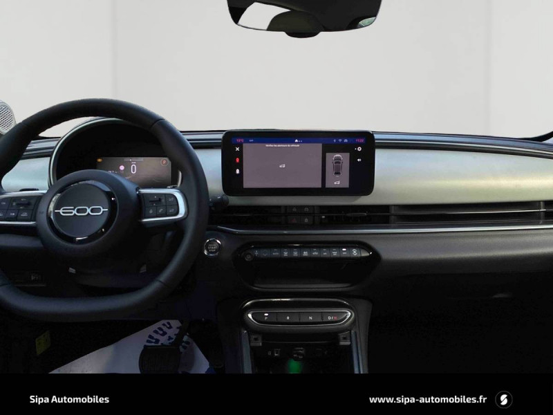 Antenne de toit type aileron de requin noir brillant / Canule d'échappement chromée / Canule d'échappement côté droit / Chargeur USB de type A et USB de type C / Chromothérapie (personnalisation de l'ambiance lumineuse intérieure) / Combiné d'instrumentation numérique 7'' / Commutation feux de route/croisement / Conduite autonome de niveau 2 / Connectivité Smartphone Apple CarPlay et Android Auto sans fil / Console centrale AV avec couvercle magnétique La Prima / Détails chromés extérieur / Freinage autonome d'urgence avec détection de piéton et de cycliste / Frein de stationnement mécanique / Hayon à ouverture électrique mains libres / Kit anti-crevaison Fix&Go / Logo 600 chromé dans la calandre AV / Logo FIAT chromé hayon de coffre / Pare-soleil avec miroir de courtoisie / Planche de bord couleur Ivoire / Plancher de coffre modulable / Poches aumonières au dos des sièges AV / Poignées de porte intérieures chromées / Projecteurs antibrouillard à LED avec fonction de virage / Projecteurs full LED 'Infinity' / Rappel du port de la ceinture de sécurité (1ère et 2ème rangées) / Réglage lombaire du siège conducteur et fonction massage / Rétroviseur intérieur photochromatique sans contour / Sellerie premium ivoire soft touch avec monogramme FIAT et logo 600 Bleu Azur / Services connectés UConnect Services / Siège conducteur à réglage électrique à 6 positions / Siège passager à réglage manuel 6 positions / Signature LED / Spots de lecture AV et AR à LED / Système ISOFIX siège AV passager et banquette AR / Système Uconnect 10,25" Nav / Tapis de sol / Tunnel central en position basse / USB de type C en 2ème rangée / Volant Soft Touch