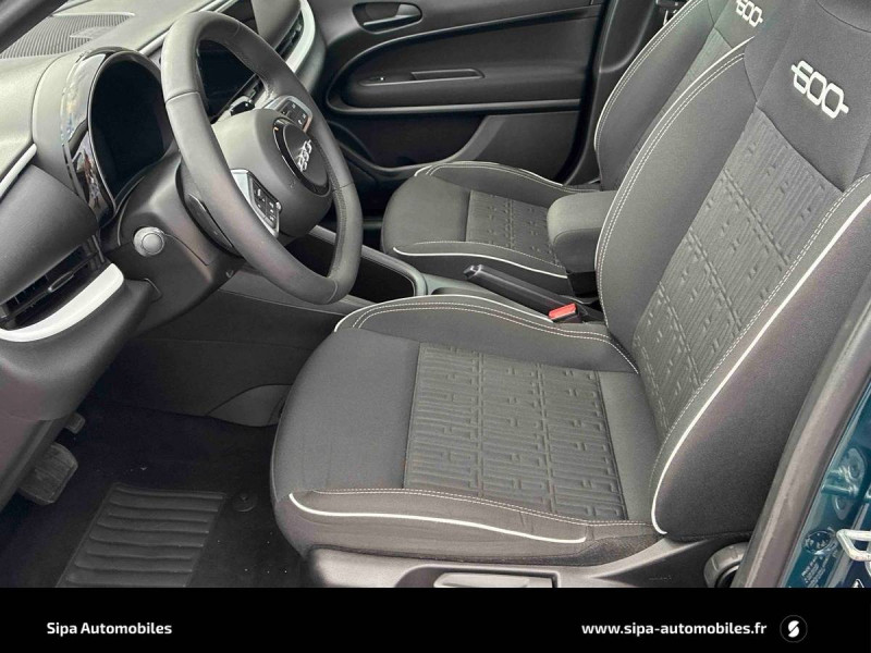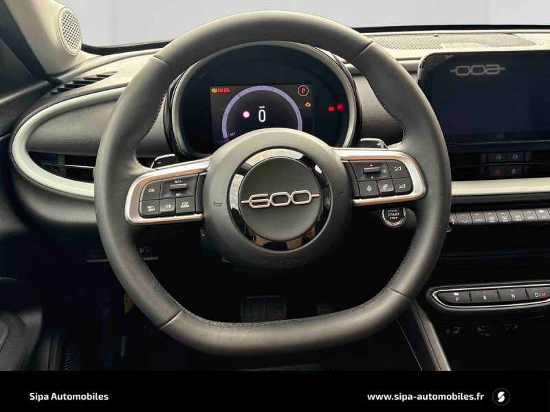 Antenne de toit type aileron de requin noir brillant / Canule d'échappement côté droit / Chargeur USB de type A et USB de type C / Combiné d'instrumentation numérique 7'' / Connectivité Smartphone Apple CarPlay et Android Auto sans fil / Coques de rétroviseurs extérieurs noires / Freinage autonome d'urgence avec détection de piéton et de cycliste / Frein de stationnement mécanique / Jantes acier 16" avec enjoliveurs bicolores / Kit anti-crevaison Fix&Go / Logo "HYBRID" sur le hayon de coffre / Pare-soleil avec miroir de courtoisie / Planche de bord noire mat / Poignées de portes intérieurs noires mat / Projecteurs full LED 'Infinity' / Rappel du port de la ceinture de sécurité (1ère et 2ème rangées) / Rétroviseur intérieur manuel jour/nuit / Sellerie en tissu seaqual avec monogramme FIAT / Services connectés UConnect Services / Siège conducteur à réglage manuel à 6 positions / Siège passager à réglage manuel à 4 positions / Spots de lecture AV et AR à LED / Système ISOFIX siège AV passager et banquette AR / Système Uconnect 10,25" / Tunnel central en position basse / Volant Soft Touch