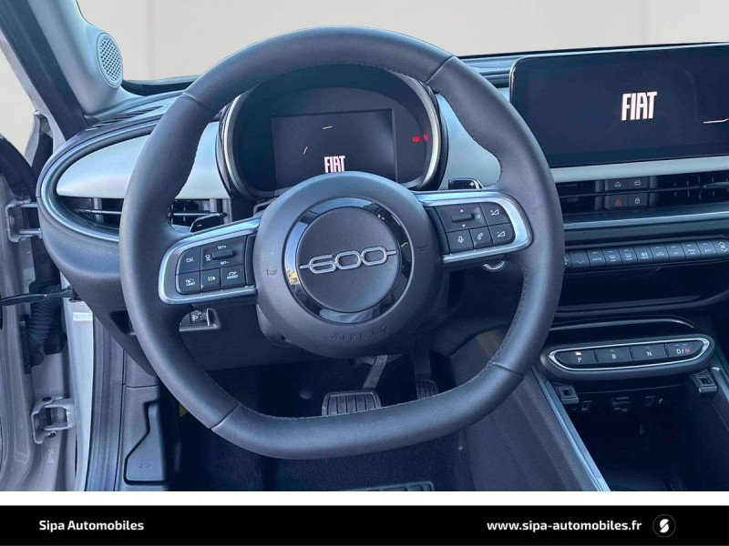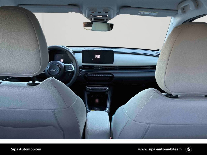 3ème appuie-tête AR / Boîte de vitesse automatique 6 rapports / Caméra de recul 180° avec lignes directrices dynamiques / Canule d'échappement côté droit / Chargeur USB de type A et USB de type C / Chargeur USB de type C à l'AR / Chromothérapie (Lumière d'ambiance intérieure) / Clignotants à LED / Combiné d'instrumentation numérique 7'' / Commutation feux de route/croisement / Conduite autonome de niveau 2 / Connectivité Smartphone Apple CarPlay et Android Auto sans fil / Console centrale avec pré-disposition couvercle magnétique / Contrôle de la traction (TCS) / Freinage autonome d'urgence avec détection de piéton et de cycliste / Frein à main électrique / Hayon à ouverture électrique mains libres / Intervalle de maintenance 25 000 km ou 1 an / Kit anti-crevaison Fix&Go / Logo "HYBRID" sur le hayon de coffre / Ouverture sans clé / Pack Hiver Sièges AV chauffants, Pare-brise AV chauffant (uniquement essuie-glace) / Pare-soleil avec miroir de courtoisie sans éclairage / Planche de bord couleur Ivoire avec contour noir brillant / Plancher de coffre modulable / Poches aumonières au dos des sièges AV / Poignées de porte intérieures chromées / Projecteurs antibrouillard à LED avec fonction de virage / Projecteurs full LED 'Infinity' (AV et AR) / Rappel du port de la ceinture de sécurité (1ère et 2ème rangées) / Réglage lombaire du siège conducteur et fonction massage / Rétroviseur intérieur photochromatique / Sellerie premium bicolore soft touch couleur plomb et ivoire avec insert logo 600 / Services connectés UConnect Services / Siège conducteur à réglage électrique à 6 positions / Siège passager à réglage manuel à 4 positions / Système ISOFIX siège AV passager et banquette AR / Système Uconnect 10,25" / Tunnel central en position basse / Volant soft touch multifonctions avec détail chromé
