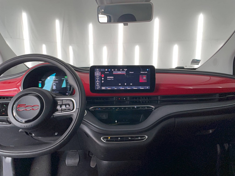 6 HP / Batterie 23,8 kWh / Boite à gants inferieure passager et rangement central supérieur fermes / Câble de recharge Mode 3 / Contours de vitres chromés / Ecran couleur TFT 7" / Frein à main électrique / Kit (RED) :coque de clé, filtre à air, traitement antimicrobien, tapis de sol, distributeur poussoir / Sellerie Tissu Seaqual + Planche de bord rouge / Système de navigation avec fonction 'Hey Fiat / Système U-Connect 10,25" (sans NAV) / Volant noir soft touch