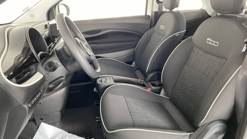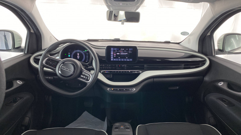 ABS - antiblocage des roues avec répartiteur de freinage EBD / Câble de recharge Mode 3 / Chargeur à induction pour smartphone / Chargeur embarqué 11 kW triphasé / Coques de rétroviseurs couleur carroserie / Détails chromés : logo 500 sur calandre et logo FIAT sur hayon / ESP - Contrôle électronique de stabilité avec aide au démarrage en côté "Hill Holder" / Freinage autonome d'urgence avec détection de piéton et de cycliste / Frein à main électrique / Pack Radio Hiver (Action Plus) / Pare-chocs peints couleur carrosserie / Poignées de portes dissimulées / Prise charge rapide (50kW) / Support smartphone / Système d'alerte sonore au piéton / Volant avec commandes