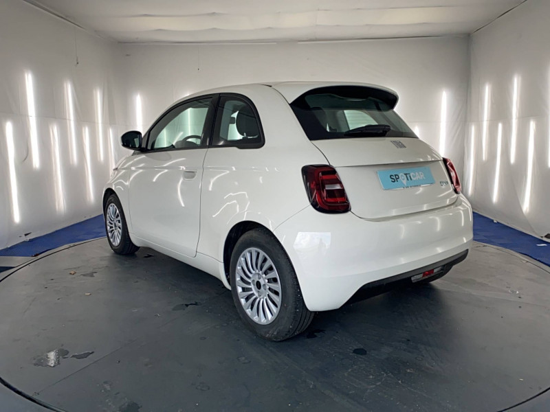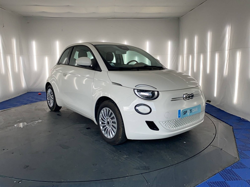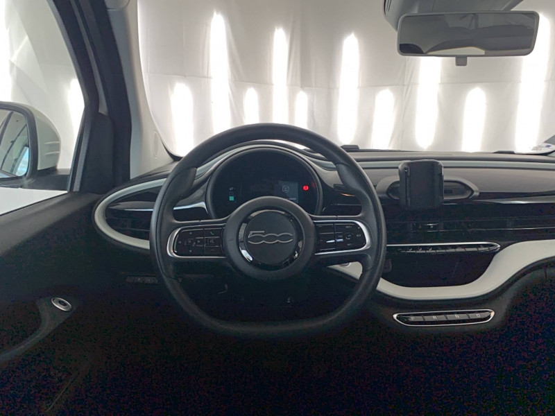 6 HP / ABS - antiblocage des roues avec répartiteur de freinage EBD / Câble de recharge Mode 3 / Chargeur embarqué 11 kW (AC) / Coques de rétroviseurs couleur carroserie / Détails chromés : logo 500 sur calandre et logo FIAT rouges sur hayon / Ecran couleur TFT 7" / Frein à main électrique / Garantie 2 ans / Pare-chocs peints couleur carrosserie / Poignées de portes dissimulées / Prise charge rapide (50kW) / Support smartphone / Système d'alerte sonore au piéton / Système U-Connect 10,25" (sans NAV) / Volant avec commandes / Volant noir soft touch