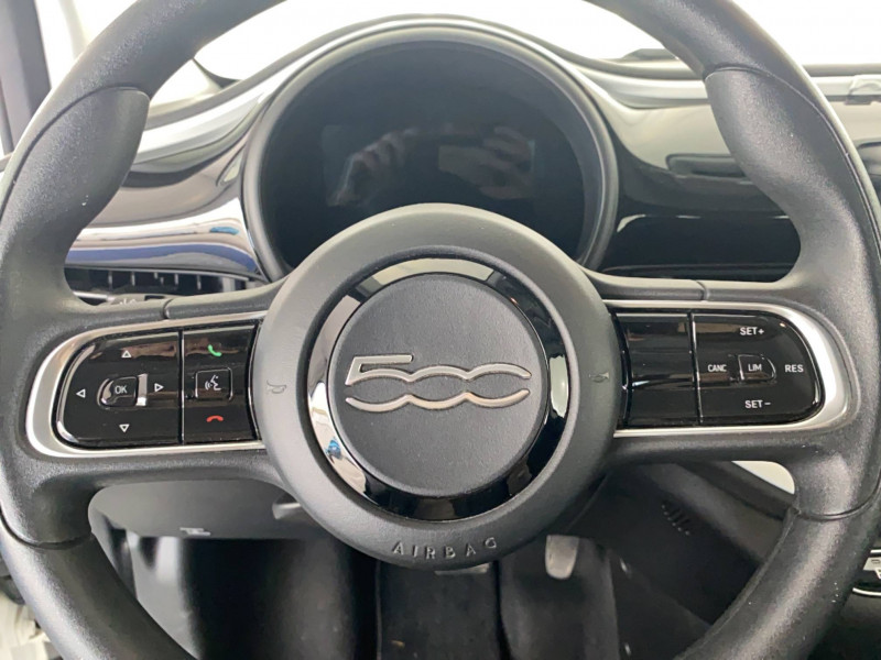 6 HP / ABS - antiblocage des roues avec répartiteur de freinage EBD / Câble de recharge Mode 3 / Chargeur embarqué 11 kW (AC) / Coques de rétroviseurs couleur carroserie / Détails chromés : logo 500 sur calandre et logo FIAT rouges sur hayon / Ecran couleur TFT 7" / Frein à main électrique / Garantie 2 ans / Pare-chocs peints couleur carrosserie / Poignées de portes dissimulées / Prise charge rapide (50kW) / Support smartphone / Système d'alerte sonore au piéton / Système U-Connect 10,25" (sans NAV) / Volant avec commandes / Volant noir soft touch