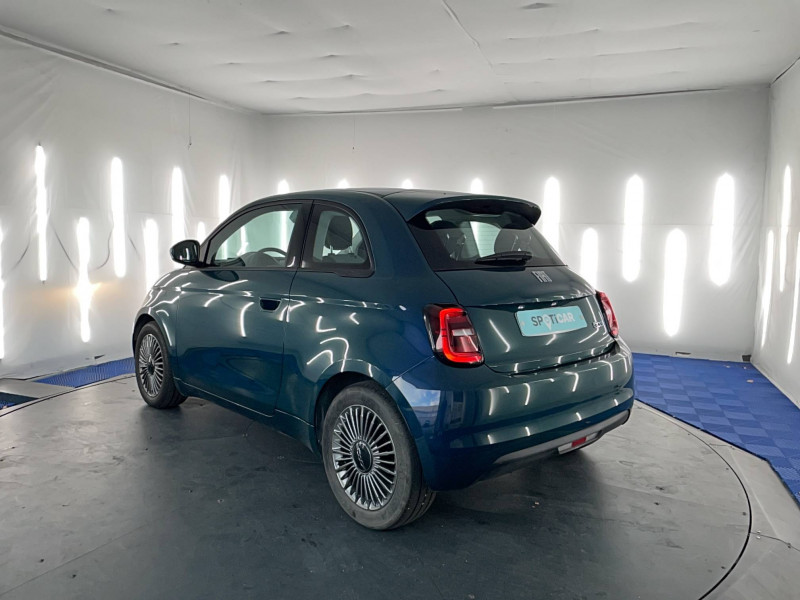 6 HP / ABS - antiblocage des roues avec répartiteur de freinage EBD / Câble de recharge Mode 3 / Chargeur embarqué 11 kW triphasé / Coques de rétroviseurs couleur carroserie / Détails chromés : logo 500 sur calandre et logo FIAT sur hayon / Ecran couleur TFT 7" / ESP - Contrôle électronique de stabilité avec aide au démarrage en côté "Hill Holder" / Freinage autonome d'urgence avec détection de piéton et de cycliste / Frein à main électrique / Limiteur de vitesse intelligent avec reconnaissance des panneaux / Mopar Connect Box / Pare-chocs peints couleur carrosserie / Poignées de portes dissimulées / Prise charge rapide (50kW) / Système d'alerte sonore au piéton / Système d'infodivertissement Uconnect 10,25'? avec navigation / Volant noir soft touch