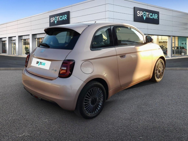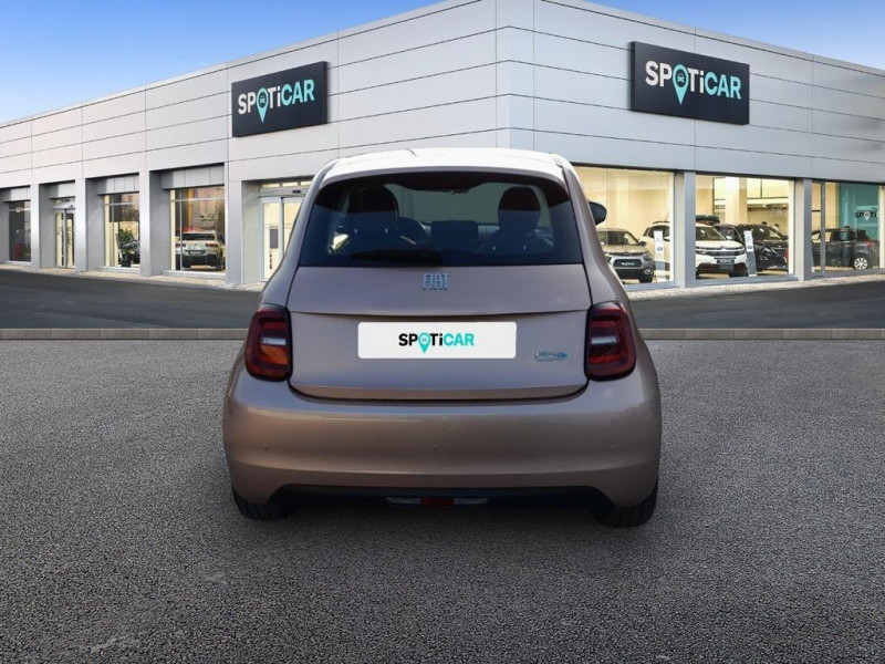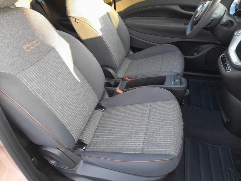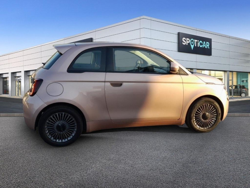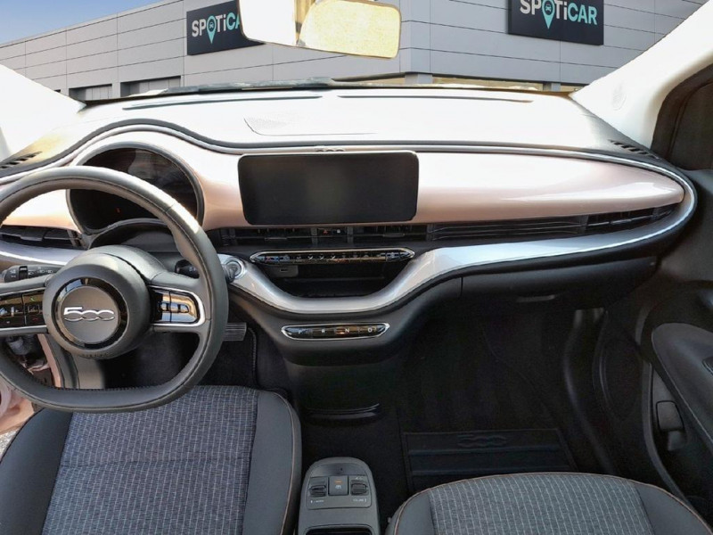 6 HP / ABS - antiblocage des roues avec répartiteur de freinage EBD / Chargeur embarqué 11 kW triphasé / Coloris de personnalisation Rose Gold / Coques de rétroviseurs couleur carroserie / Câble de recharge Mode 3 / Détails chromés : logo 500 sur calandre et logo FIAT sur hayon / Détecteur de fatigue / ESP - Contrôle électronique de stabilité avec aide au démarrage en côté «Hill Holder» / Ecran couleur TFT 7p / Frein à main électrique / Freinage autonome d'urgence avec détection de piéton et de cycliste / Kit Fix & Go / Limiteur de vitesse intelligent avec reconnaissance des panneaux / Mopar Connect Box / Pare-chocs peints couleur carrosserie / Poignées de portes dissimulées / Prise charge rapide (85kW) / Siège conducteur avec 4 réglages / Système d'alerte sonore au piéton / Système d'infodivertissement Uconnect 10 / 25'‘ avec navigation / Volant noir soft touch