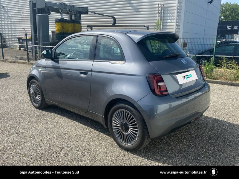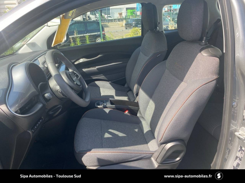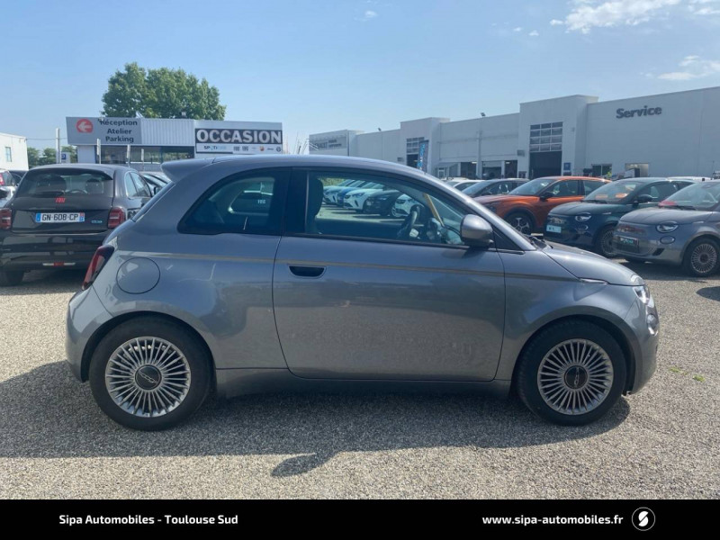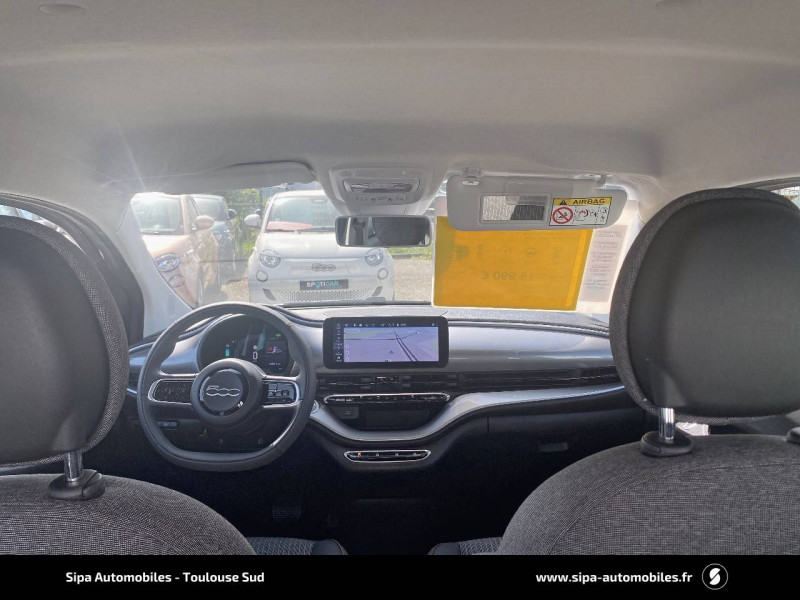 6 HP / ABS - antiblocage des roues avec répartiteur de freinage EBD / Câble de recharge Mode 3 / Chargeur embarqué 11 kW triphasé / Coques de rétroviseurs couleur carroserie / Détails chromés : logo 500 sur calandre et logo FIAT sur hayon / Ecran couleur TFT 7" / ESP - Contrôle électronique de stabilité avec aide au démarrage en côté "Hill Holder" / Freinage autonome d'urgence avec détection de piéton et de cycliste / Frein à main électrique / Limiteur de vitesse intelligent avec reconnaissance des panneaux / Mopar Connect Box / Pare-chocs peints couleur carrosserie / Poignées de portes dissimulées / Prise charge rapide (50kW) / Système d'alerte sonore au piéton / Système d'infodivertissement Uconnect 10,25'? avec navigation / Volant noir soft touch