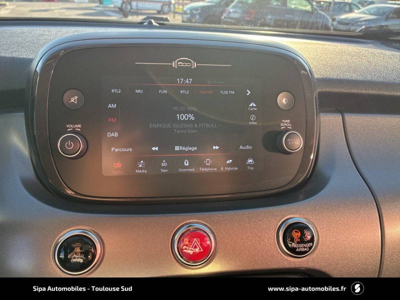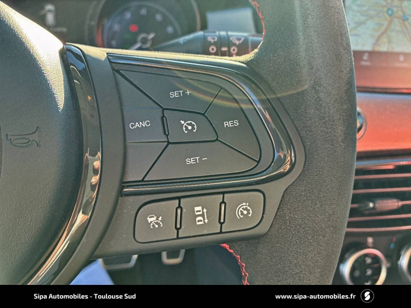 3ème appuie-tête AR / ABS - Antiblocage des roues avec répartiteur de freinage EBD / Combiné de bord avec affichage digital TFT 3,5'' couleur / Eclairage d'ambiance / Frein de stationnement électrique / Habillage instrumentation en Alcantara / Navigation sur système U-Connect 7'' / Pack Full ADAS / Pack Full Lights / Pack Magic Eye / Pedalier en aluminium / Peinture pastel Blanc Gelato / Plancher de coffre amovible / Projecteurs antibrouillard à LED avec fonction cornering / Projecteurs avant Full LED (feux de route / feux de croisement / Réglage lombaire électrique conducteur / Rétroviseur intérieur photochromatique / Sellerie en tissu Arrow avec inserts vinyl et passepoils rouge/gris / Siège passager AV rabattable / Système Uconnect 7" Bluetooth, Apple CarPlay / Android Auto / Tapis de sol AV et AR / Toit ouvrant panoramique électrique / Volant sport méplat en cuir et Alcantara / Volant sport spécifique