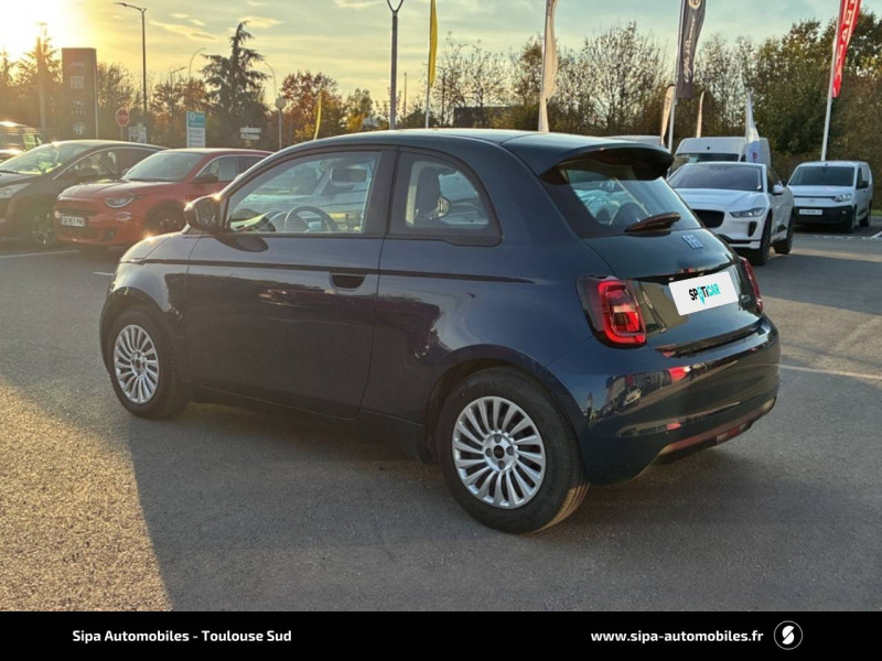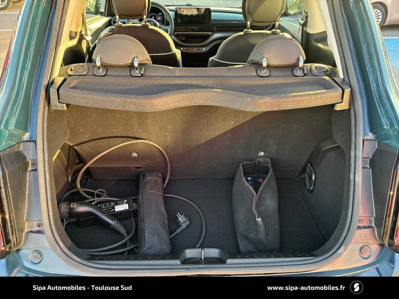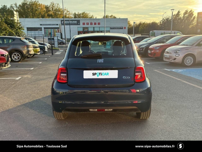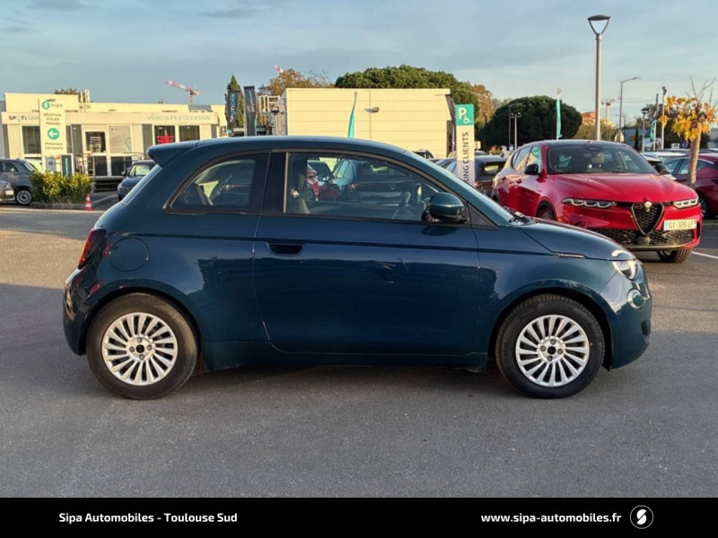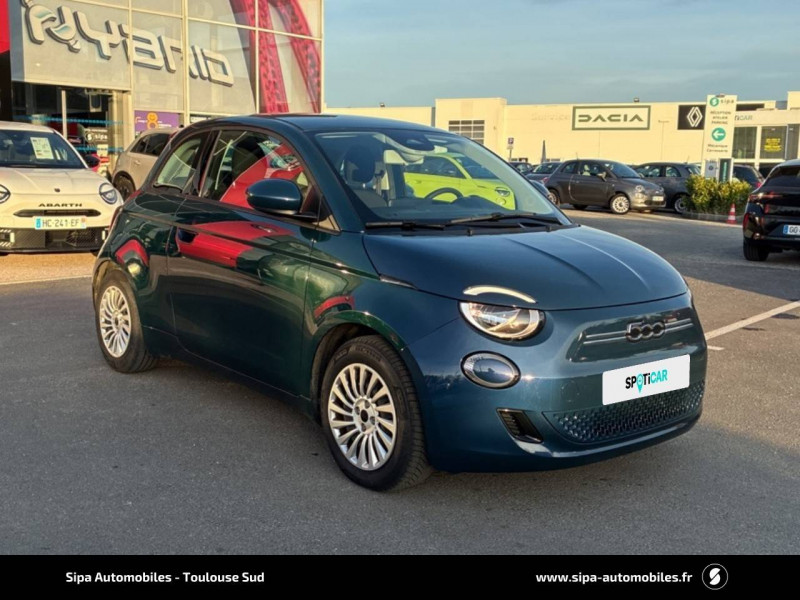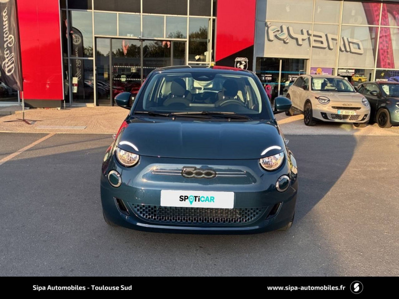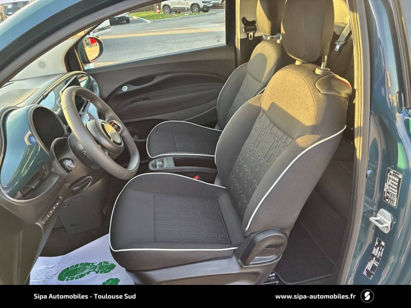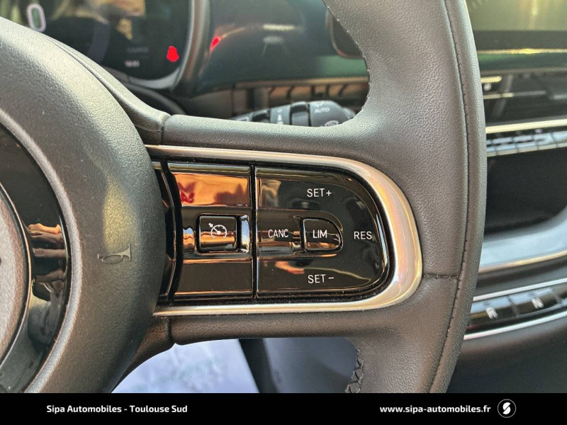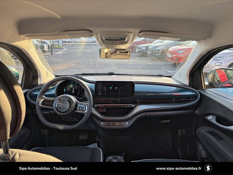6 HP / ABS - antiblocage des roues avec répartiteur de freinage EBD / Câble de recharge Mode 3 / Chargeur embarqué 11 kW triphasé / Coques de rétroviseurs couleur carroserie / Détails chromés : logo 500 sur calandre et logo FIAT sur hayon / Ecran couleur TFT 7" / ESP - Contrôle électronique de stabilité avec aide au démarrage en côté "Hill Holder" / Freinage autonome d'urgence avec détection de piéton et de cycliste / Frein à main électrique / Limiteur de vitesse intelligent avec reconnaissance des panneaux / Mopar Connect Box / Pare-chocs peints couleur carrosserie / Poignées de portes dissimulées / Prise charge rapide (85kW) / Système d'alerte sonore au piéton / Système d'infodivertissement Uconnect 10,25'? avec navigation / Volant noir soft touch