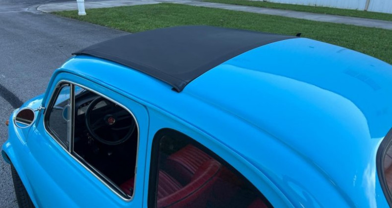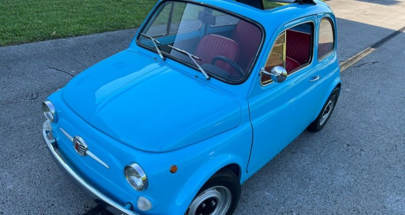 Le véhicule en vente est un Fiat 500 ragtop de 1971, bleu laqué avec toit noir en toile et intérieur rouge. Il s'agit d'une rareté avec cette combinaison de couleurs. Il dispose d'un moteur 650 cc supérieur au moteur standard 500 cc, ce qui le rend plus puissant. L'équipement comprend un embrayage à 4 vitesses manuel, une transmission intégrale arrière et une conduite à air. Le véhicule a été restauré il y a quelques années et est toujours entretenu et conservé dans une garde-robe. L'état général du véhicule est bon, avec des parties extérieures en chrome, des badges, des béquilles et des pare-chocs en bon état. Les planchers originaux sont également bien conservés. L'intérieur est en revêtement sportif italien rouge et est très bien réalisé. Il dispose également d'un capot moteur soigné et d'un échappement stock standard qui produit un bel son. Le véhicule est équipé d'une couverture de toit noire. Il comprend également un support de bagages. Le véhicule est situé à Miami, environ 30 minutes de l'aéroport. Toute demande d'information peut être adressée à l'éditeur automobile spécialisé.. Ce descriptif est basé sur les éléments communiqués par le propriétaire avec un traitement assisté. Merci pour votre indulgence en cas de formulation perfectible. Provenance : Florida. Disponibilité : 7 semaines, clés en main. 25 000 € tout compris (importation, taxes, procédure d'immatriculation). Annonce publiée le 04/11/2025
