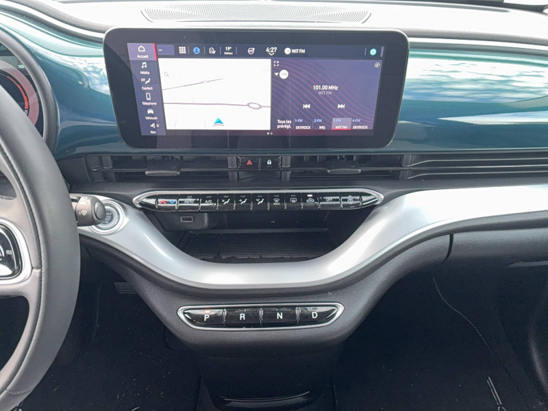 Câble mode 2 (2,3 kW) / Clé spécifique en forme de galet / Freinage autonome d'urgence avec détection de piéton et de cycliste / Frein à main électrique / Garantie 2 ans / Garantie batteries 42 kW : 8 ans ou 160 000 km / Ouverture sans clé / Pack Avantage / Prise charge rapide (85kW) / Système Uconnect 10,25'' avec navigation / Vitres full électriques ouverture/fermeture par télécommande