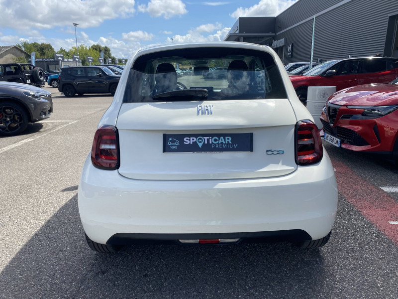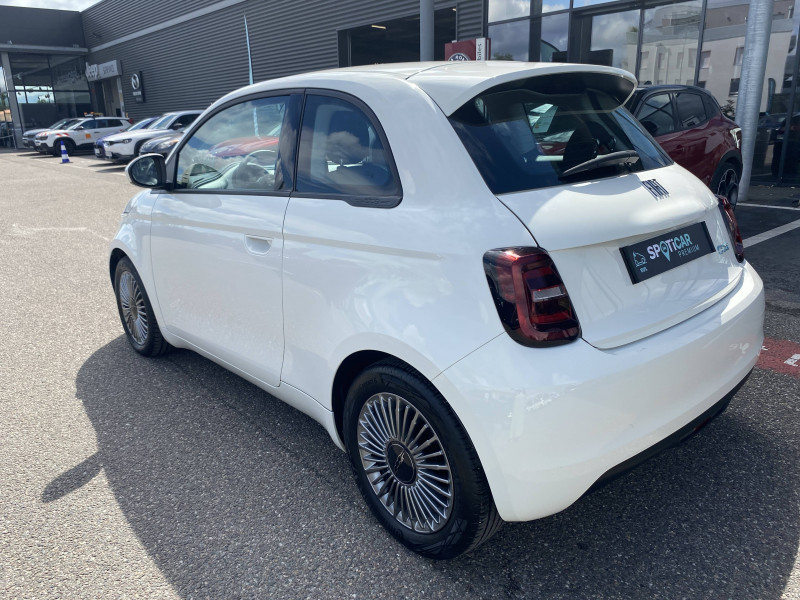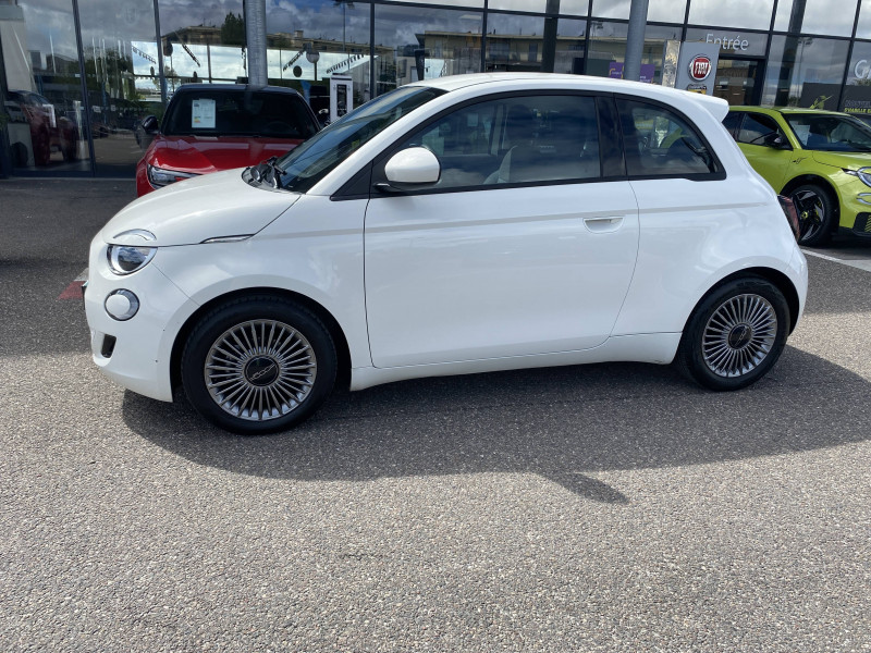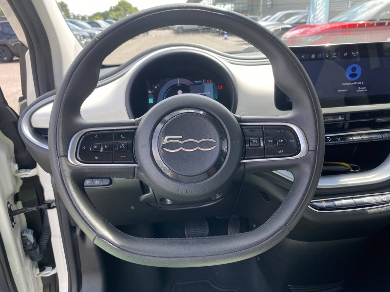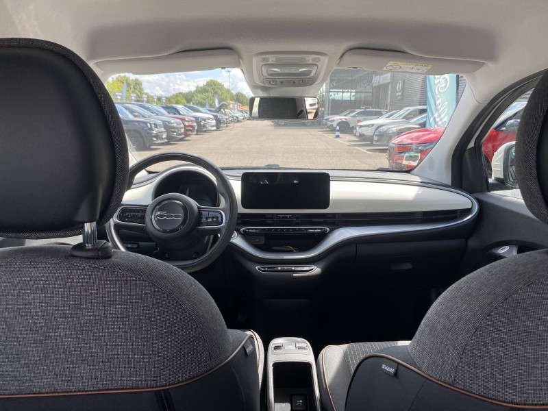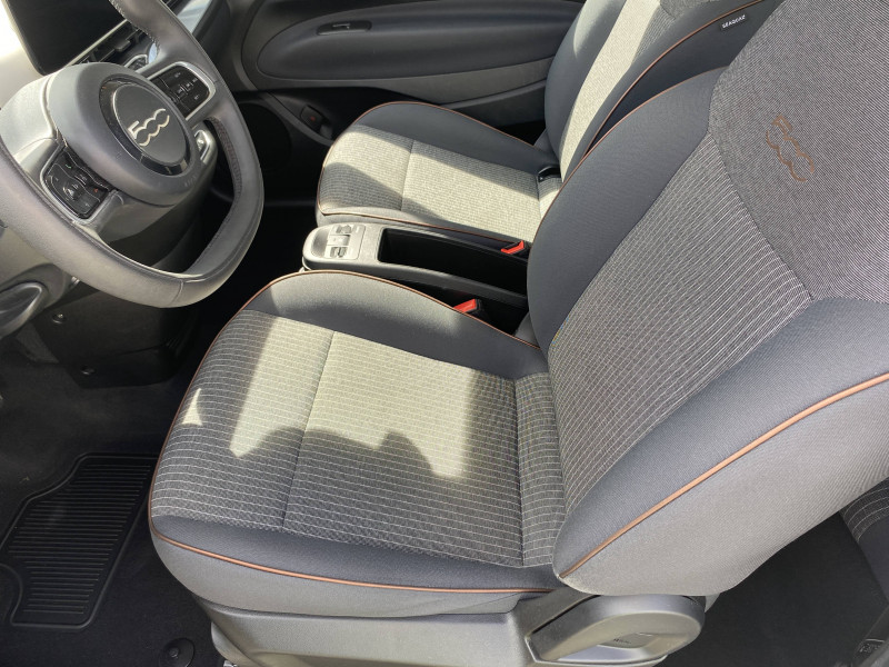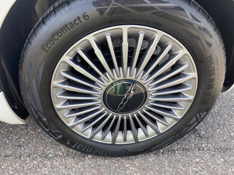 ABS - antiblocage des roues avec répartiteur de freinage EBD / Câble de recharge Mode 3 / Chargeur embarqué 11 kW triphasé / Coques de rétroviseurs couleur carroserie / Détails chromés : logo 500 sur calandre et logo FIAT sur hayon / ESP - Contrôle électronique de stabilité avec aide au démarrage en côté "Hill Holder" / Freinage autonome d'urgence avec détection de piéton et de cycliste / Frein à main électrique / Limiteur de vitesse intelligent avec reconnaissance des panneaux / Mopar Connect Box / Pare-chocs peints couleur carrosserie / Poignées de portes dissimulées / Prise charge rapide (50kW) / Système d'alerte sonore au piéton / Système d'infodivertissement Uconnect 10,25'? avec navigation