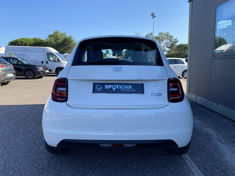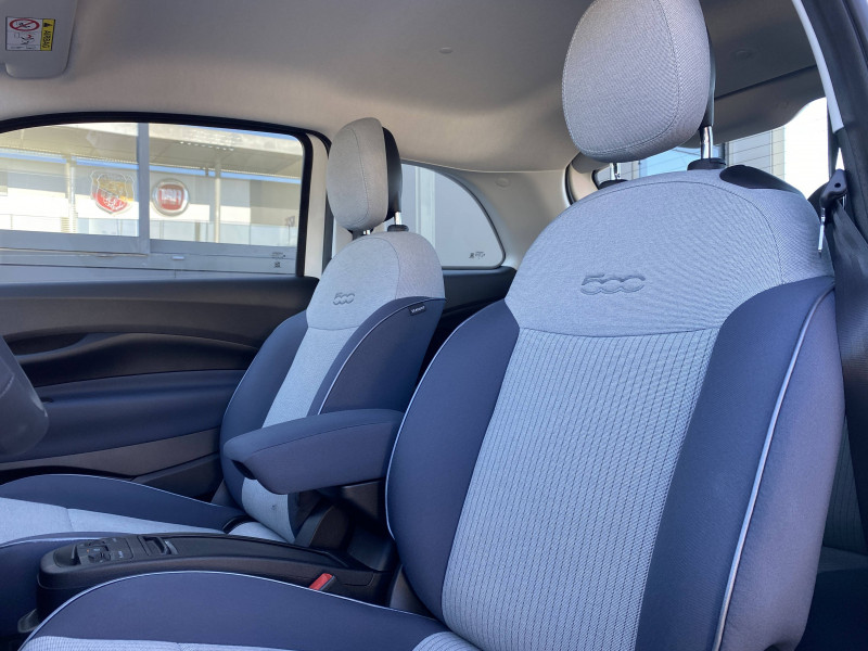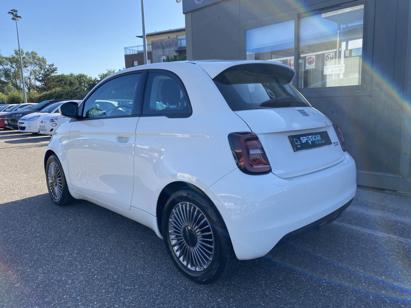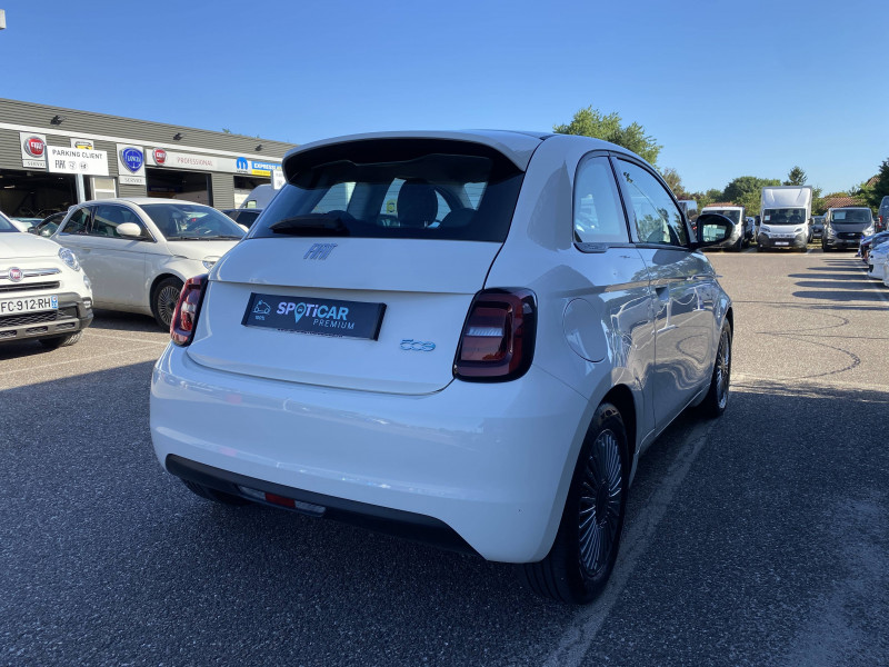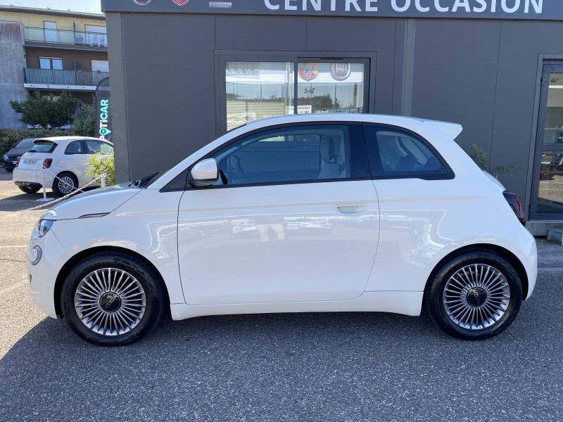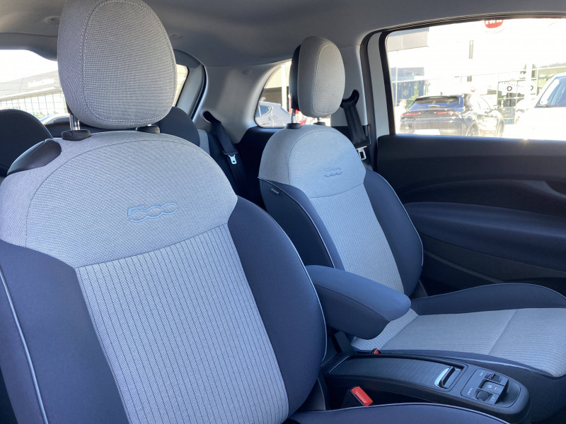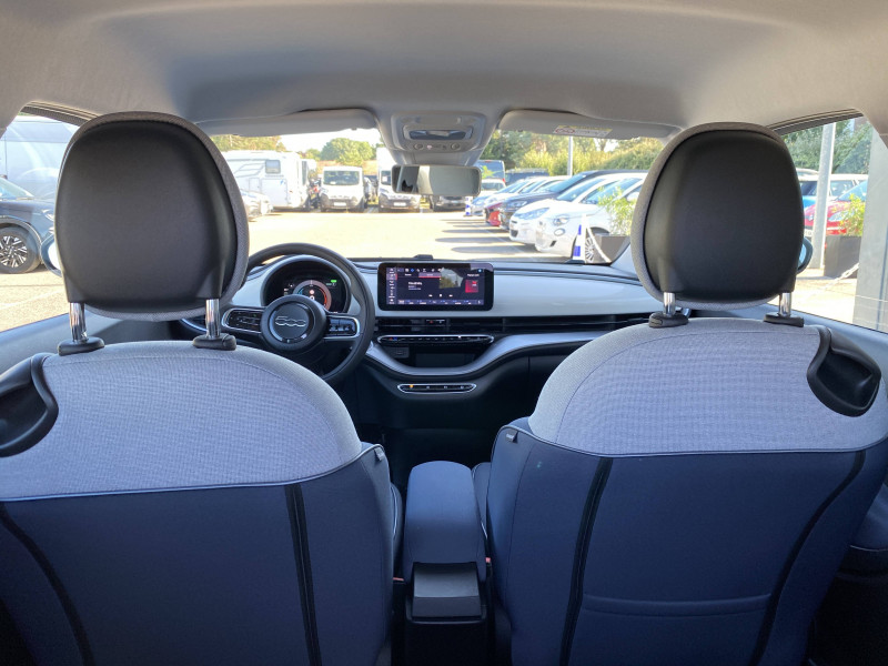 6 HP / ABS - antiblocage des roues avec répartiteur de freinage EBD / Câble de recharge Mode 3 / Chargeur embarqué 11 kW triphasé / Coques de rétroviseurs couleur carroserie / Détails chromés : logo 500 sur calandre et logo FIAT sur hayon / Ecran couleur TFT 7" / ESP - Contrôle électronique de stabilité avec aide au démarrage en côté "Hill Holder" / Freinage autonome d'urgence avec détection de piéton et de cycliste / Frein à main électrique / Limiteur de vitesse intelligent avec reconnaissance des panneaux / Mopar Connect Box / Pare-chocs peints couleur carrosserie / Poignées de portes dissimulées / Prise charge rapide (50kW) / Système d'alerte sonore au piéton / Système d'infodivertissement Uconnect 10,25'? avec navigation / Volant noir soft touch