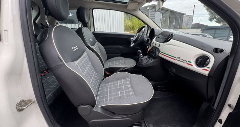 Fiat 500 1.2 8V 69CH LOUNGE, (Berline), BLANC, 4cv, 3 portes, mise en circulation le 05-06-2018, garantie 3 mois (3 MOIS). 4 places, longueur : 3,57 mètres, boîte de vitesse : manuelle OPTIONS ET EQUIPEMENTS : Audio - Télécommunications - 6 Haut parleurs - Commandes du système audio au volant - Commandes vocales - Ecran tactile - Kit mains-libres Bluetooth - Prise USB - Prise auxiliaire de connexion audio - Radio Conduite - Aide au démarrage en côte - Follow me home - Limiteur de vitesse - Régulateur de vitesse Extérieur - Boucliers AV et AR couleur caisse - Calandre chromée - Ceinture de vitrage chromée - Essuie-glace arrière - Feux de jour à LED - Jantes Alu - Phares halogènes - Radar de stationnement AR - Rétroviseurs dégivrants - Rétroviseurs électriques - Toit panoramique en verre - Velum rang 1 - Velum rang 2 Intérieur - Appui-tête conducteur réglable hauteur - Appui-tête passager réglable en hauteur - Bacs de portes avant - Banquette 2 places - Banquette 50/50 - Banquette AR rabattable - Clim manuelle - Compte tours - Ecran multifonction couleur - Filtre à Pollen - Lampe de coffre - Lunette AR dégivrante - Miroir de courtoisie passager éclairé - Ordinateur de bord - Porte-gobelets arrière - Porte-gobelets avant - Siège conducteur réglable en hauteur - Tablette cache bagages - Température extérieure - Verrouillage auto. des portes en roulant - Verrouillage centralisé à distance - Vitres avant électriques - Vitres teintées - Volant cuir - Volant multifonction - Volant réglable en hauteur Sécurité - ABS - Aide au freinage d'urgence - Airbag conducteur - Airbag genoux - Airbag passager déconnectable - Airbags latéraux avant - Airbags rideaux - Antidémarrage électronique - Antipatinage - BAS - EBD - ESP - Phares antibrouillard - Préparation Isofix - Témoin de perte de pression pneumatique Autres équipements et informations : - Coloris Métal Tech House Grey Kilométrage garanti. Référence annonce : 10775