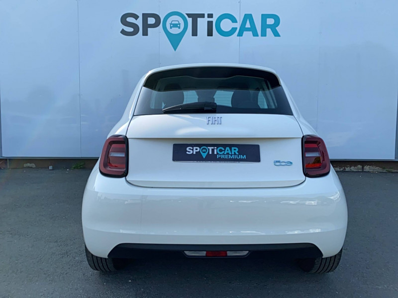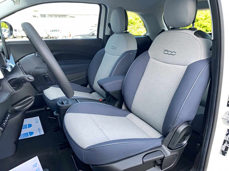 ABS - antiblocage des roues avec répartiteur de freinage EBD / Câble de recharge Mode 3 / Chargeur embarqué 11 kW triphasé / Coques de rétroviseurs couleur carroserie / Détails chromés : logo 500 sur calandre et logo FIAT sur hayon / ESP - Contrôle électronique de stabilité avec aide au démarrage en côté "Hill Holder" / Freinage autonome d'urgence avec détection de piéton et de cycliste / Frein à main électrique / Limiteur de vitesse intelligent avec reconnaissance des panneaux / Mopar Connect Box / Pare-chocs peints couleur carrosserie / Poignées de portes dissimulées / Prise charge rapide (50kW) / Système d'alerte sonore au piéton / Système d'infodivertissement Uconnect 10,25'? avec navigation