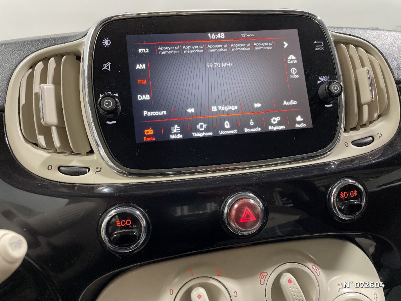 Banquette AR rabattable 50/50 et appuie-tête AR / Capote à ouverture électrique et lunette AR en verre à dégivrage électrique / Combiné de bord à affichage numérique TFT 7" / Coques de rétroviseurs extérieurs couleur carrosserie / Direction assistée "DualDrive" et fonction "city" / Dispositif d'éclairage "Follow me home" / ABS - antiblocage des roues avec répartiteur de freinage EBD / Eclairage du coffre / ESP - Contrôle électronique de stabilité avec aide au démarrage en côté "Hill Holder" / Air conditionné avec filtre anti-pollen / Filet anti-remous Windstop / Jantes alliage de 15" New Lounge / Kit Chrome / Kit fumeur / Pare-chocs peints couleur carrosserie / Poignée de maintien intérieure / Poignées de portes extérieures chromées / Rétroviseurs électriques teinte carrosserie et indicateur de temperature extérieure / Start&Stop : Système automatique d'allumage/extinction du moteur lors de courts arrêts / Start&Stop : Système automatique d'allumage/extinction du moteur lors de courts arrêts / Uconnect Radio 5" LIVE (Dual Tuner/USB/AUX/Bluetooth) / Volant gainé de cuir avec commandes radio