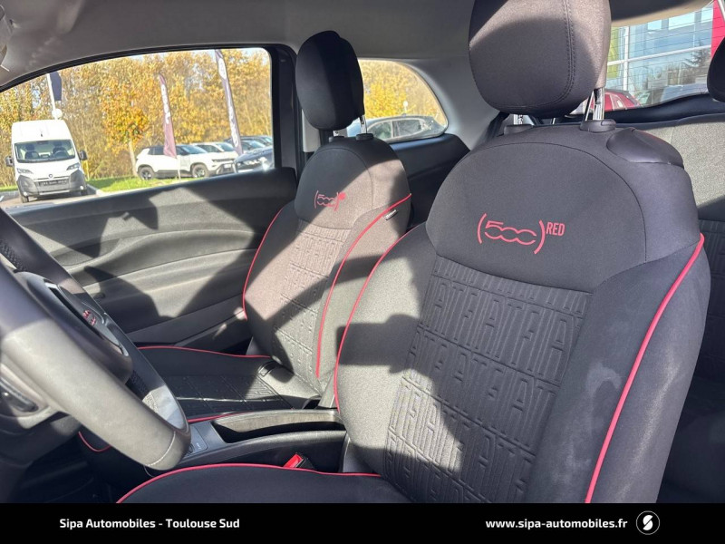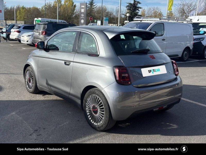 ABS - antiblocage des roues avec répartiteur de freinage EBD / Boîte à gants désinfectante avec lampe UV-C / Câble de recharge Mode 3 / Chargeur embarqué 11 kW triphasé / Contours de vitres chromés / Coques de rétroviseurs extérieurs rouges / Détails chromés : logo 500 sur calandre et logo FIAT rouges sur hayon / ESP - Contrôle électronique de stabilité avec aide au démarrage en côté "Hill Holder" / Freinage autonome d'urgence avec détection de piéton et de cycliste / Frein à main électrique / Kit (RED) :coque de clé, filtre à air, traitement antimicrobien, tapis de sol, distributeur poussoir / Limiteur de vitesse intelligent avec reconnaissance des panneaux / Mopar Connect Box / Pare-chocs peints couleur carrosserie / Poignées de portes dissimulées / Prise charge rapide (50kW) / Sellerie Tissu Seaqual avec monogramme Fiat + Planche de bord rouge / Système d'alerte sonore au piéton / Système d'infodivertissement Uconnect 10,25'? avec navigation / Tapis de sol