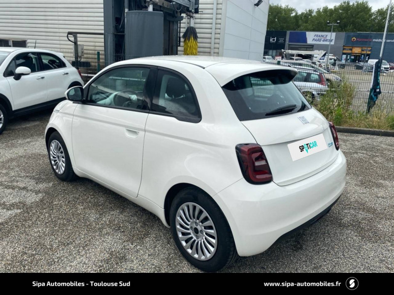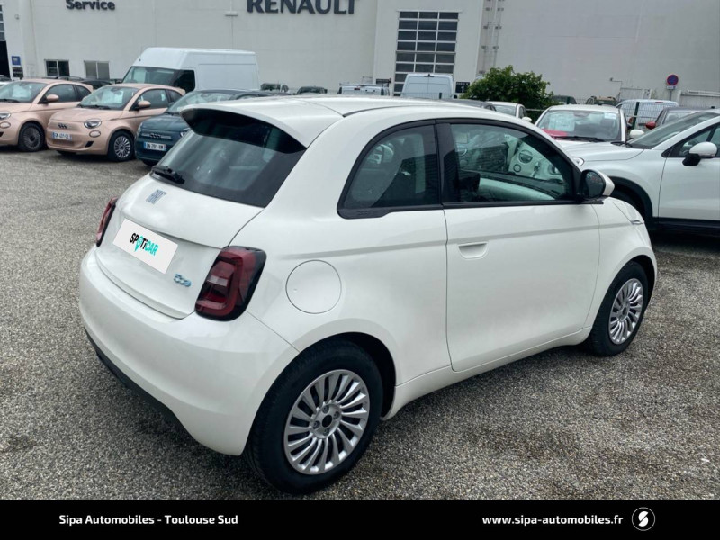 6 HP / ABS - antiblocage des roues avec répartiteur de freinage EBD / Batterie 23,8 kWh / Câble de recharge Mode 3 / Chargeur embarqué 11 kW (AC) / Coques de rétroviseurs couleur carroserie / Détails chromés : logo 500 sur calandre et logo FIAT sur hayon / Ecran couleur TFT 7" / Frein à main électrique / Pare-chocs peints couleur carrosserie / Poignées de portes dissimulées / Recharge rapide 50 kW (DC) / Sellerie Tissu Seaqual noir + Planche de bord couleur carrosserie / Système d'alerte sonore au piéton / Système U-Connect 10,25" (sans NAV) / Volant avec commandes / Volant noir soft touch