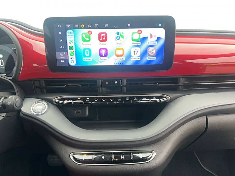 6 HP / Batterie 23,8 kWh / Boite à gants inferieure passager et rangement central supérieur fermes / Câble de recharge Mode 3 / Contours de vitres chromés / Ecran couleur TFT 7" / Frein à main électrique / Kit (RED) :coque de clé, filtre à air, traitement antimicrobien, tapis de sol, distributeur poussoir / Système de navigation avec fonction 'Hey Fiat / Système U-Connect 10,25" (sans NAV) / Volant noir soft touch