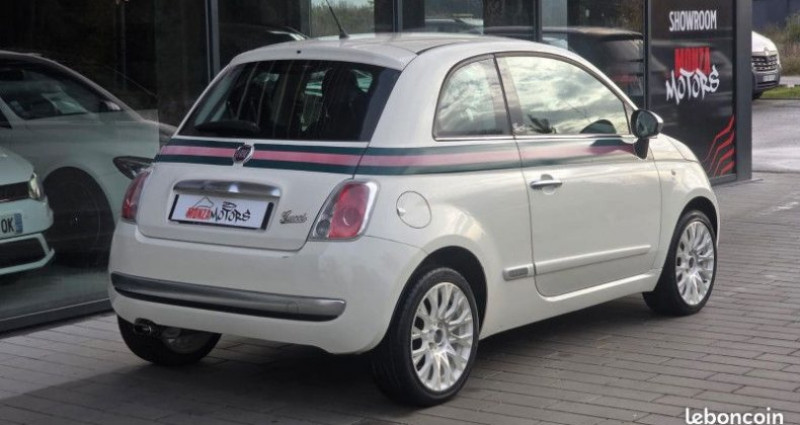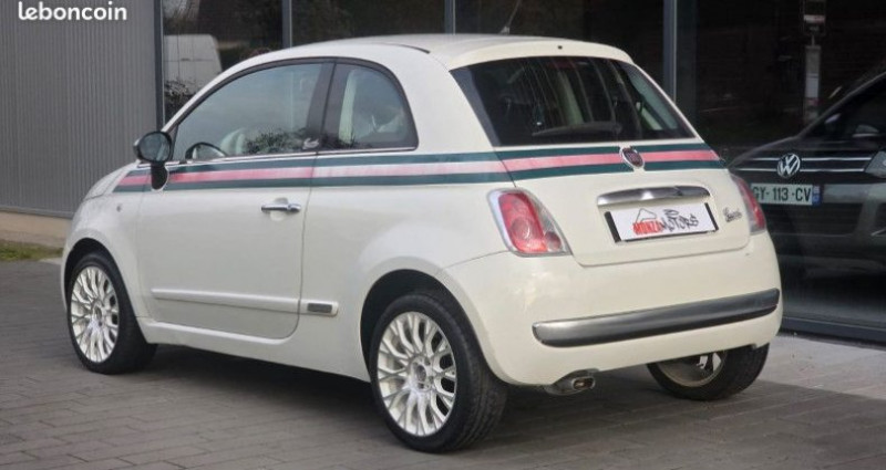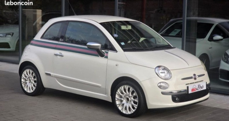 Fiat 500 1.2 8V 69CH 500BYGUCCI, (Berline), INC, 4cv, 3 portes, mise en circulation le 07-09-2012, garantie 6 mois (6 MOIS). 4 places, couleur intérieur : NOIR, longueur : 3,55 mètres, boîte de vitesse : manuelle OPTIONS ET EQUIPEMENTS : Audio - Télécommunications - Blue & Me - Commandes vocales - Kit mains-libres Bluetooth - Prise USB - Prise auxiliaire de connexion audio - Radio CD MP3 Extérieur - Boucliers AV et AR couleur caisse - Calandre chromée - Ceinture de vitrage chromée - Essuie-glace arrière - Jantes Alu 16 - Peinture métal - Peinture nacrée - Phares halogènes - Radar de recul - Rétroviseurs électriques - Rétroviseurs électriques dégivrants - Sortie d'échappement chromée - Sticker Intérieur - Bacs de portes avant - Banquette 2 places - Banquette 50/50 - Banquette AR rabattable - Clim automatique - Compte tours - Direction assistée - Direction assistée asservie à la vitesse - Filtre à Pollen - Fixations Isofix aux places arrières - Kit Fumeur - Miroir de courtoisie passager - Ordinateur de bord - Porte-gobelets arrière - Porte-gobelets avant - Siège conducteur réglable en hauteur - Tablette cache bagages - Température extérieure - Verrouillage auto. des portes en roulant - Verrouillage centralisé à distance - Vitres avant électriques - Vitres teintées - Volant cuir + commandes audio au volant - Volant multifonction - Volant réglable en hauteur Sécurité - ABS - Aide au freinage d'urgence - Airbag conducteur - Airbag genoux - Airbag passager déconnectable - Airbags frontaux - Airbags latéraux avant - Airbags rideaux - Antidémarrage électronique - EBD - Phares antibrouillard - Préparation Isofix - Roue de secours galette - Répartiteur électronique de freinage Autres équipements et informations : - Coloris Blanc Lux nacré - Commandes radio au volant + volant cuir - Sellerie cuir Kilométrage garanti. Référence annonce : 1698