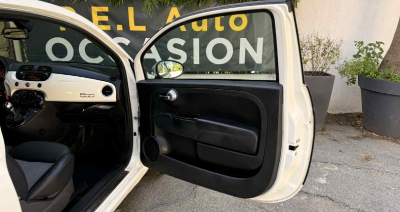 Cylindrée : 875 cm3 Nb. Vitesse : 5 - 7 airbags au total : en plus des airbags latéraux '500', airbags de toit et genoux - ABS et EBD - Airbags Fiat conducteur et passager - Autoradio CD MP3 - Banquette AR rabattable 50/50 et appuie-tête AR - Boucliers couleur carrosserie - Climatisation manuelle avec filtre anti-pollen - Commande radio au volant et volant gainé en cuir - Condamnation centralisée avec commande à distance - Condamnation des ouvrant en roulant - Direction assistée 'DualDrive' et fonction 'city' - Fixations ISOFIX pour les sièges enfants - Jantes alliage de 15' Multispoke, 6.5Jx15' avec pneumatique 185/55 R15 - Kit Chrome (baquette de vitres latérales chromés - Kit fumeur - Logo '500' sur la planche de bord - Pare-chocs couleur carrosserie - Pare-soleil doté d'un miroir éclairé - Peinture Tropicalia Yellow - Poignée de maintien intérieure - Poignées de portes extérieures chromées - Projecteurs antibrouillard - Rangement sous siège AV passager - Rétroviseurs électriques teinte carrosserie et indicateur de temperature extérieure - Roue de secours galette - Siège conducteur réglable en hauteur et appuie-tête réglable en hauteur - Start