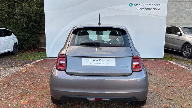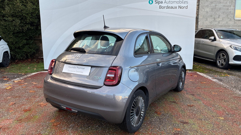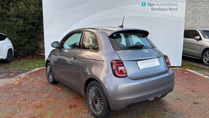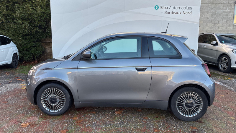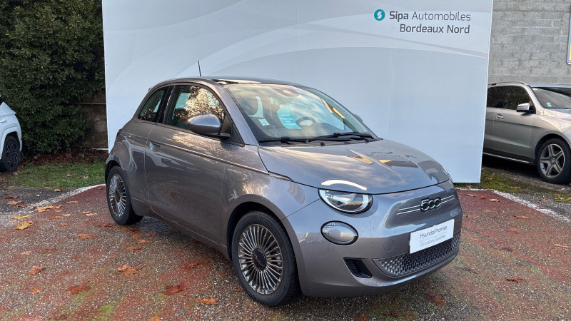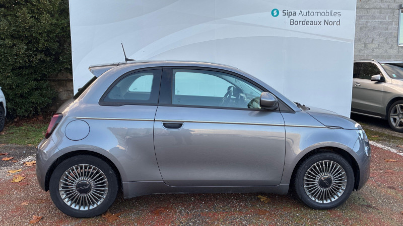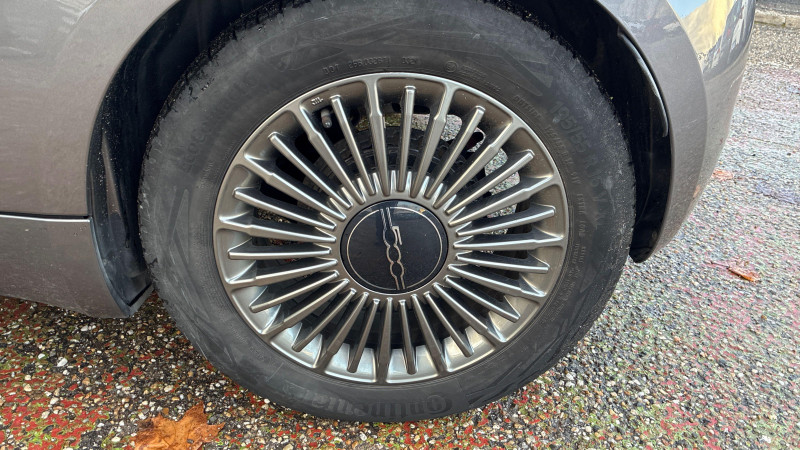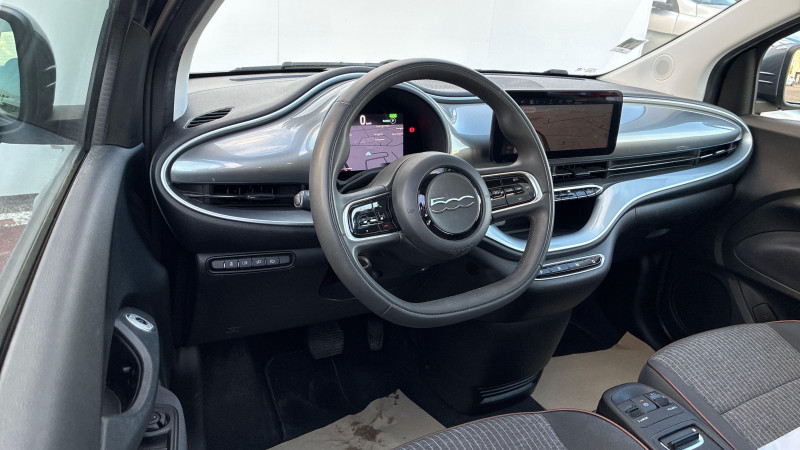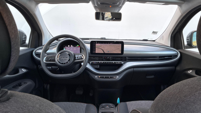 ESP - Contrôle électronique de stabilité avec aide au démarrage en côté "Hill Holder" / Système d'infodivertissement Uconnect 10,25'? avec navigation / ABS - antiblocage des roues avec répartiteur de freinage EBD / Chargeur embarqué 11 kW triphasé / Coques de rétroviseurs couleur carroserie / Câble de recharge Mode 3 / Détails chromés : logo 500 sur calandre et logo FIAT sur hayon / Frein à main électrique / Freinage autonome d'urgence avec détection de piéton et de cycliste / Limiteur de vitesse intelligent avec reconnaissance des panneaux / Mopar Connect Box / Pare-chocs peints couleur carrosserie / Poignées de portes dissimulées / Prise charge rapide (85kW) / Système d'alerte sonore au piéton
