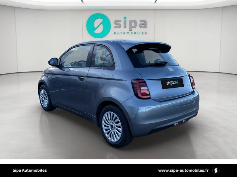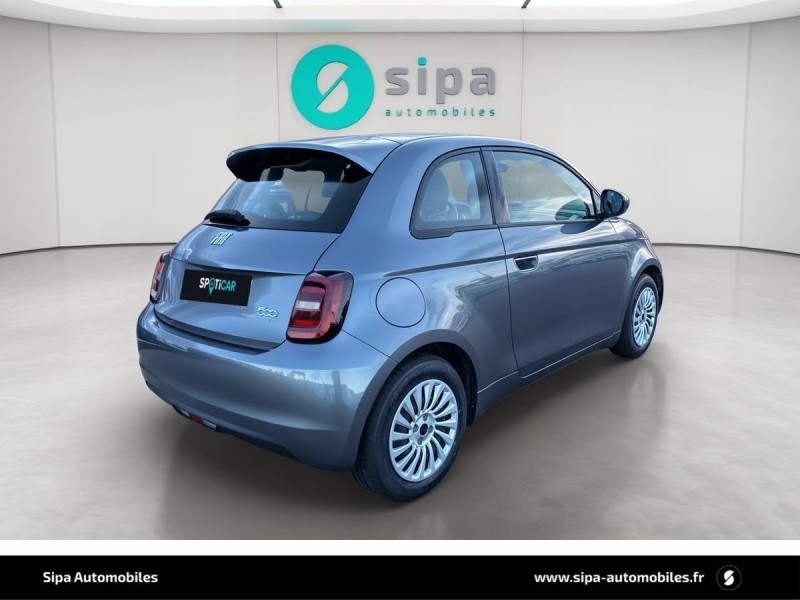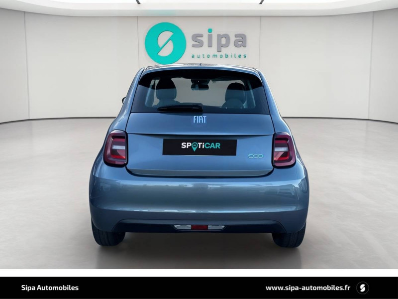 6 HP / ABS - antiblocage des roues avec répartiteur de freinage EBD / Câble de recharge Mode 3 / Chargeur embarqué 11 kW (AC) / Coques de rétroviseurs couleur carroserie / Détails chromés : logo 500 sur calandre et logo FIAT rouges sur hayon / Ecran couleur TFT 7" / Frein à main électrique / Garantie 2 ans / Pare-chocs peints couleur carrosserie / Poignées de portes dissimulées / Prise charge rapide (50kW) / Support smartphone / Système d'alerte sonore au piéton / Système U-Connect 10,25" (sans NAV) / Volant avec commandes / Volant noir soft touch