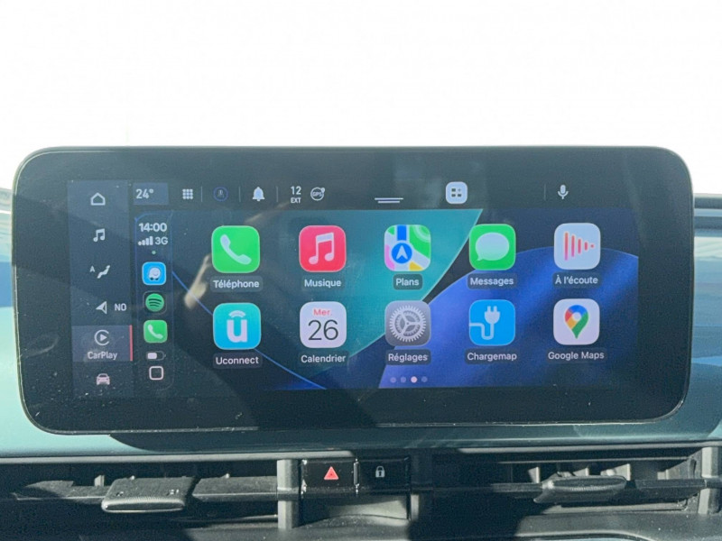 Câble mode 2 (2,3 kW) / Chargeur à induction pour smartphone / Clé spécifique en forme de galet / Feux croisement/route automatique / Freinage autonome d'urgence avec détection de piéton et de cycliste / Frein à main électrique / Garantie 2 ans / Garantie batteries 42 kW : 8 ans ou 160 000 km / Ouverture sans clé / Pack Avantage / Pack Magic Eye / Prise charge rapide (85kW) / Projecteurs AV full LED "Infinity" / Rétroviseur intérieur photochromatique / Seuils de portes / Système Uconnect 10,25'' avec navigation / Tapis de sol / Vitres full électriques ouverture/fermeture par télécommande