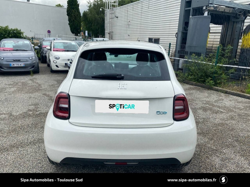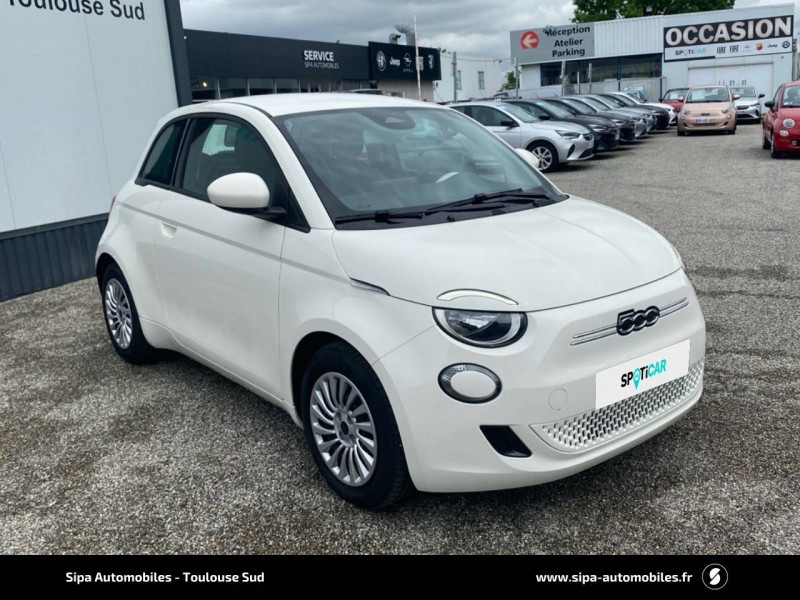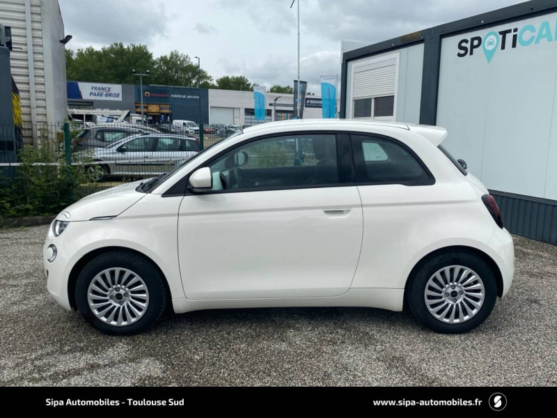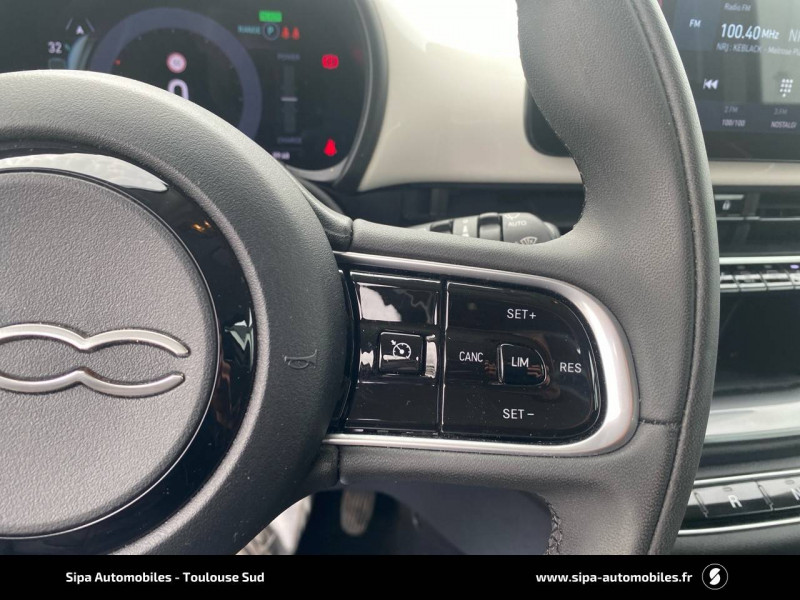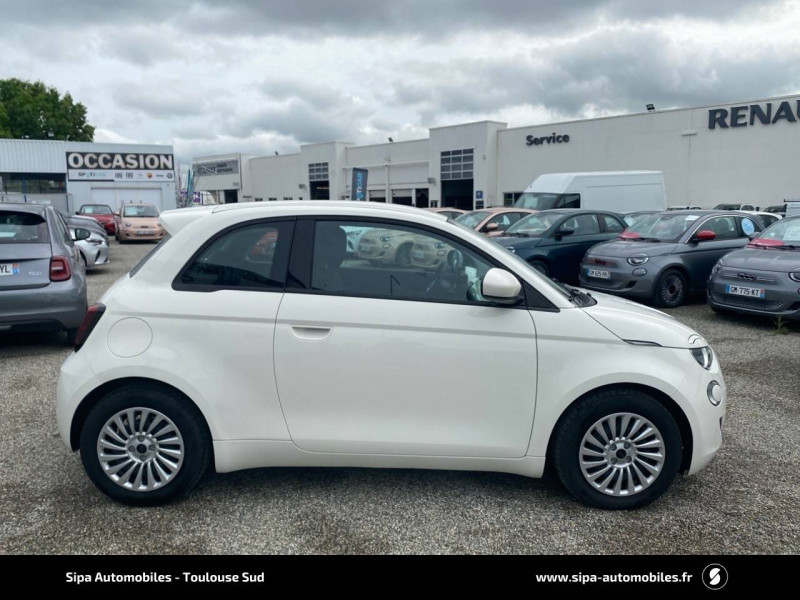 6 HP / ABS - antiblocage des roues avec répartiteur de freinage EBD / Batterie 23,8 kWh / Câble de recharge Mode 3 / Chargeur embarqué 11 kW (AC) / Coques de rétroviseurs couleur carroserie / Détails chromés : logo 500 sur calandre et logo FIAT sur hayon / Ecran couleur TFT 7" / Frein à main électrique / Pare-chocs peints couleur carrosserie / Poignées de portes dissimulées / Recharge rapide 50 kW (DC) / Sellerie Tissu Seaqual noir + Planche de bord couleur carrosserie / Système d'alerte sonore au piéton / Système U-Connect 10,25" (sans NAV) / Volant avec commandes / Volant noir soft touch