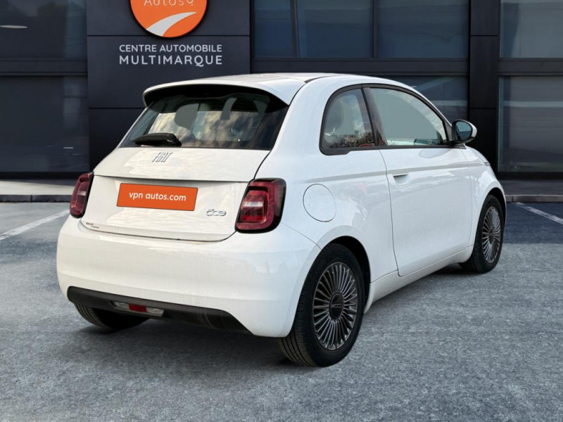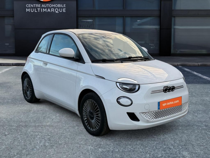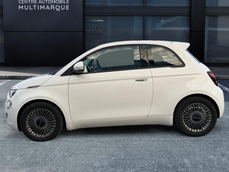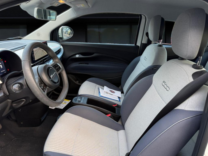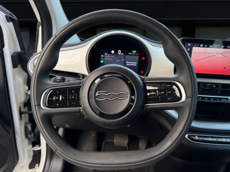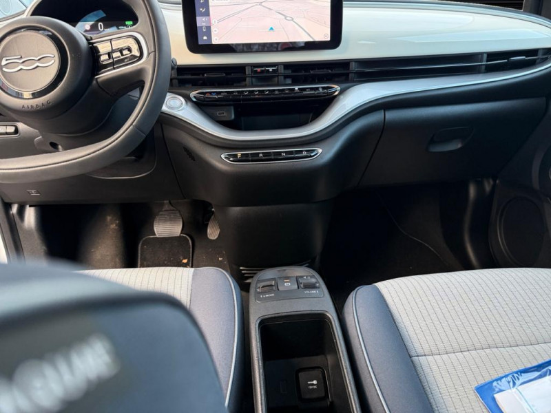 ABS ? antiblocage des roues avec répartiteur de freinage EBD / Chargeur embarqué AC mono-triphasé jusquà 11 kW / Câble de recharge type 2 Mode 3 (recharge Wallbox & bornes publiques) / Détails chromés : logo 500 sur calandre et logo FIAT sur hayon / ESP - contrôle électronique de stabilité avec ?Hill Holder" / Frein à main électrique / Freinage d?urgence autonome / Mopar Connect Box / Pare-chocs couleur carrosserie / Poignées de portes dissimulées / Prise de charge rapide (85kW) / Siège conducteur à réglage manuel 4 positions / Système dalerte pour piétons / Système davertissement de franchissement de ligne avec correction