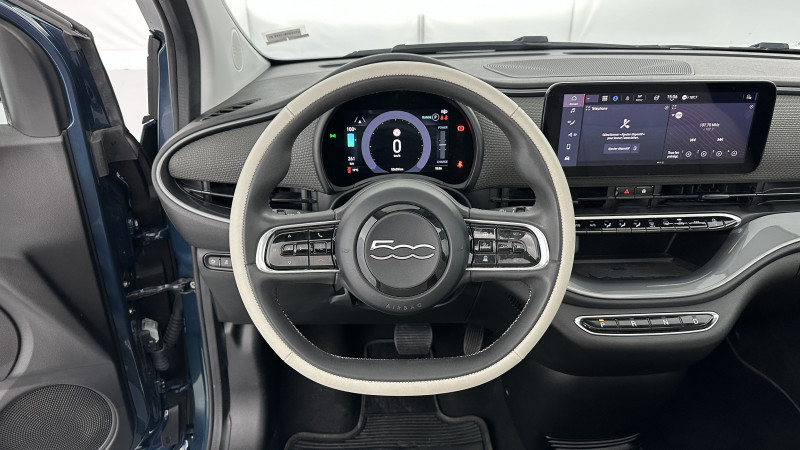 Véhicule d'occasion, peut comporter quelques défauts (Voir 360°) / Câble de recharge type 2 Mode 3 (Wallbox & bornes publiques) / Capote couleur noire / Jantes en alliage 17? Bicolores / Tapis de sol / Volant avec commandes ?soft-touch? bicolore / Rétroviseur intérieur photochromatique / Système Uconnect 10,25? DAB avec navigation / Sélecteur de mode de conduite EV : Normal, Range, Sherpa / Copilote Fiat : maintien dans la voie et régulateur adaptatif intelligent / Pack Magic Eye / Pack Eye Park /