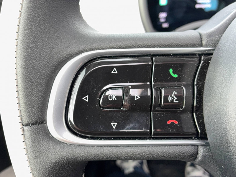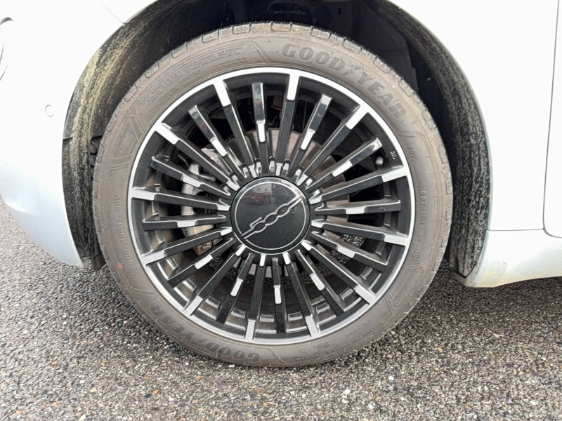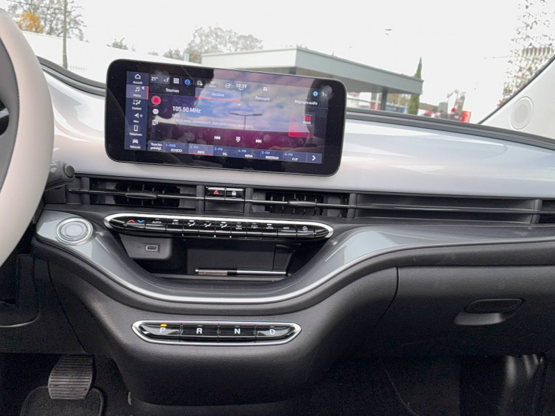 6 HP / ABS - antiblocage des roues avec répartiteur de freinage EBD / Batterie 42 kWh / Boîte de vitesse à fonction Continue / Câble de recharge Mode 3 / Capote avec monogramme FIAT / Chargeur embarqué 11 kW (AC) / Contrôle de la traction (TCS) / Coques de rétroviseurs couleur carroserie / Détails chromés : logo 500 sur calandre et logo FIAT sur hayon / Ecran couleur TFT 7" / Frein à main électrique / Pack Confort - Accoudoir central - Banquette fractionnable 50/50 - Pare-brise chauffant - Sièges AV chauffants - Siège conducteur réglable en hauteur / Pack Style Plus Baguettes latérales chromées Capote monogramme Fiat Compartiment central de rangement avec fermeture Conduite assistée de niveau 2 Contours de vitres chromés Feux de croisement/route automatiques Jantes alliage 17'' bicolores Ouvert.sans clé côté conducteur Plaque Pilier C 'La Prima' Projecteurs AV full LED 'Infinity' Rétroviseur intérieur photochromatique Sellerie premium soft touch ivoire Seuils de portes chromés Tapis de sol Vitres AR surteintées Vitres AV électriques Volant / Pack Tech - 6 HP - Apple CarPlay & Android Auto sans fil - Caméra de recul - Capteurs de pluie - Chargeur à induction pour smartphone - Climatisation automatique - Détecteur d'angles morts - Port USB type A-C sur tunnel central - Radars de stationnement 360° - Rétroviseurs à réglage électrique dégivrants - Système Uconnect 10,25'' avec navigation / Pare-chocs peints couleur carrosserie / Projecteurs AV full LED "Infinity" / Recharge rapide 85 kW (DC) / Sellerie Tissu Soft touch Ivoire + Planche de bord couleur Carrosserie / Système d'alerte sonore au piéton / Système U-Connect 10,25" (sans NAV) / TPMS / Volant avec commandes / Volant bicolore soft touch