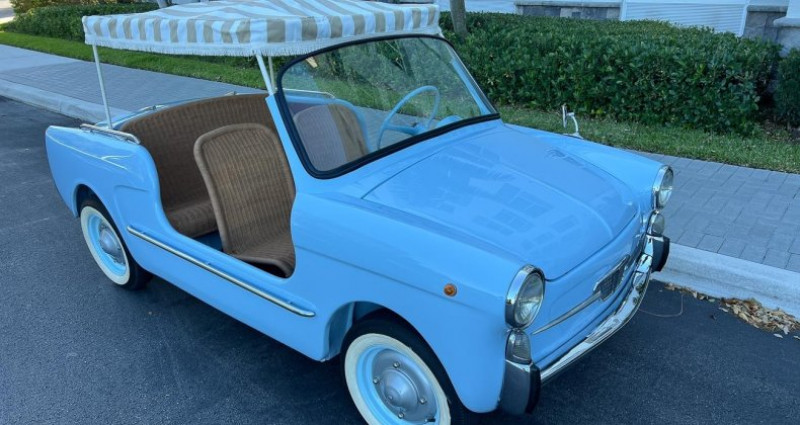 - Marque : Autobianchi Bianchi Jolly - Année : 1963 - Numéro d'inventaire : 14 - Couleur extérieure : Bleu bébé - Couleur intérieure : Wicker - Type de carrosserie : 2 portes - Boîte de vitesses : Manuelle - Type d'alimentation : essence - Moteur : 500cc - Kilométrage : 25 - Transmission intégrale : non - Vidéo disponible - Canapé intérieur neuf - Trimming et chromes neufs - Garage conservé - Équipement : moteur refroidi par air, échappement agréable à l'oreille (voir vidéo) - Situation : Miami, à 30 minutes du terminal aéroportuaire - Disponible pour les spectacles automobiles et les croisières de fin de semaine - Vendu dans l'état où il est - Dépôt de 500 $ non remboursable - Titre de propriété de la Floride propre - Équipement : non spécifié dans l'annonce. Provenance : Florida. Disponibilité : environ 7 semaines, clés en main. 44 500 € tout compris (importation, taxes, procédure d'immatriculation). Annonce publiée le 11/12/2025