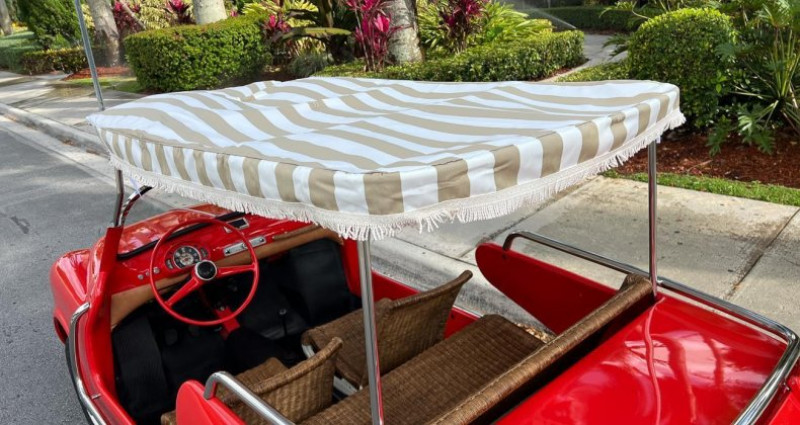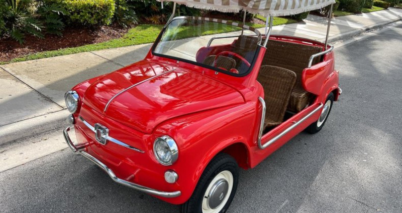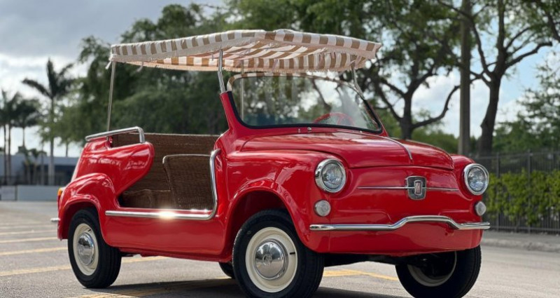 - Marque : Fiat - Modèle : 600 Jolly - Année : 1963 - Couleur extérieure : Rouge - Couleur intérieure : Tan - Type de carrosserie : Coupe - Transmission : Manuelle - Type d'essence : Essence - Moteur : 633cc - Kilométrage : 25 miles - État : Restauré et converti en Jolly en Italie, entreposé en garage - Siège : Nouveaux sièges en tissu en wicker - Toit : Immaculé - Drivetrain : RWD - Travaux récents : Restoration et conversion en Jolly en Italie - État des pièces chromées, trim, latches, bumperettes : Bon état - État des panneaux du plancher : Bon état - Véhicule équipé d'une boîte de vitesses à 4 rapports - Moteur à refroidissement à eau - Moteur bien détaillé - Financier recommandé : JJ Best - Véhicule disponible à Miami, à environ 30 minutes du terminal aéroportuaire - Titre de propriété de la Floride propre - Véhicule vendu dans l'état où il est - Dépôt de 500 $ non remboursable - Informations sur l'équipement : Aucune information spécifique fournie dans l'annonce. Provenance : Florida. Disponibilité : environ 7 semaines, clés en main. 53 500 € tout compris (importation, taxes, procédure d'immatriculation). Annonce publiée le 13/12/2025