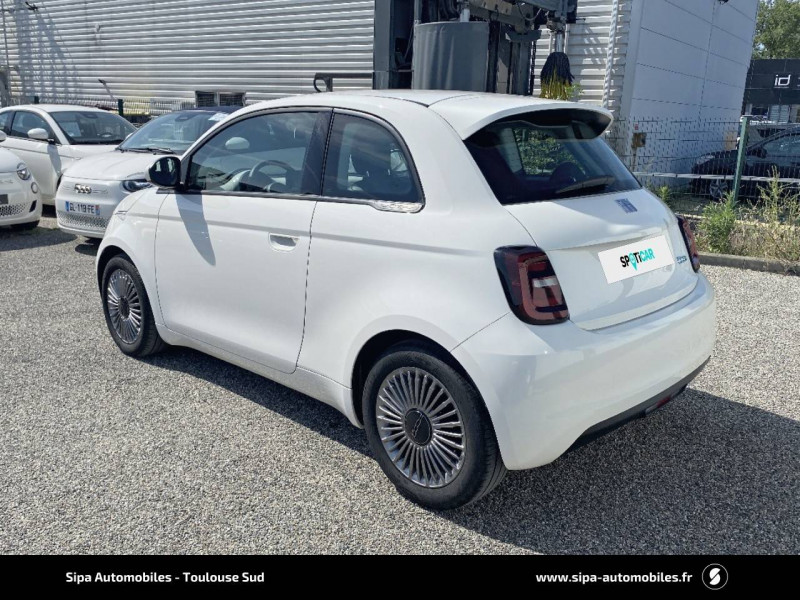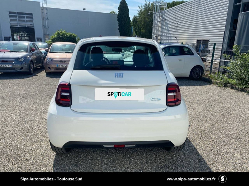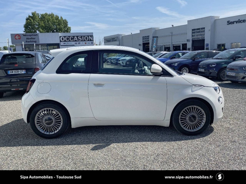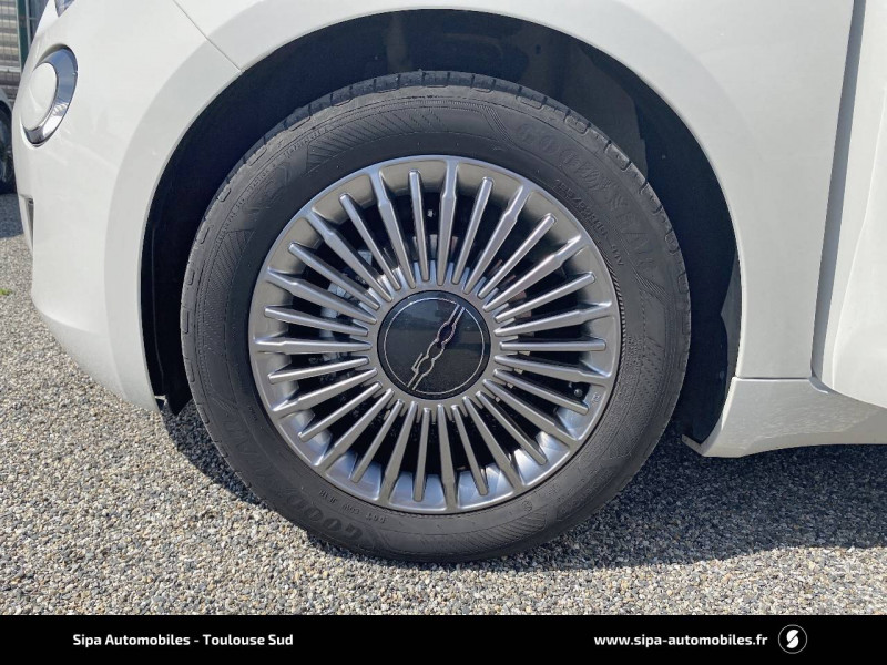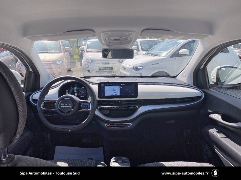 ABS - antiblocage des roues avec répartiteur de freinage EBD / Câble de recharge Mode 3 / Chargeur embarqué 11 kW triphasé / Coques de rétroviseurs couleur carroserie / Détails chromés : logo 500 sur calandre et logo FIAT sur hayon / ESP - Contrôle électronique de stabilité avec aide au démarrage en côté "Hill Holder" / Freinage autonome d'urgence avec détection de piéton et de cycliste / Frein à main électrique / Limiteur de vitesse intelligent avec reconnaissance des panneaux / Mopar Connect Box / Pare-chocs peints couleur carrosserie / Poignées de portes dissimulées / Prise charge rapide (50kW) / Système d'alerte sonore au piéton / Système d'infodivertissement Uconnect 10,25'? avec navigation