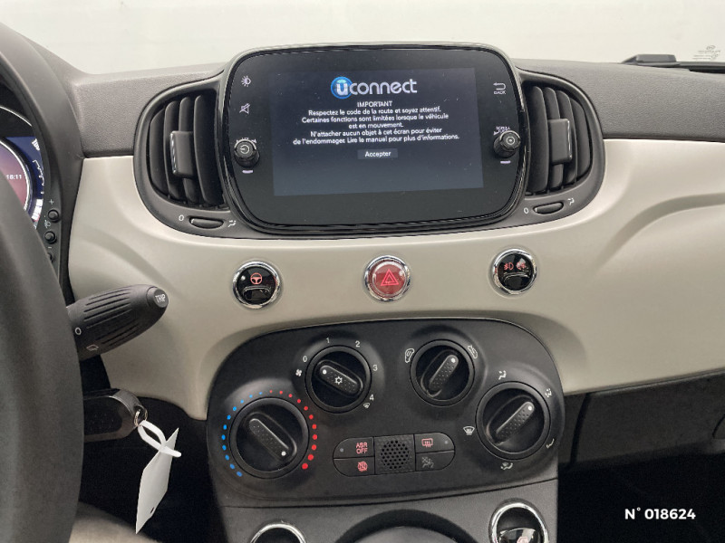 ESP avec système "Hill Holder" / Tapis de sol / Coques de rétroviseurs extérieurs couleur carrosserie / Pare-chocs peints couleur carrosserie / Système Link : Intégration Apple CarPlay et compatibilité Android Auto / Direction assistée électrique "DualDrive" et fonction "city" / Eclairage du coffre / Rétroviseurs électriques et indicateur de temperature extérieure / TPMS / Système Uconnect 7" HD LIVE (Dual Tuner/USB/Bluetooth) / Finitions chromées / Tableau de bord sable blanc à la finition nacrée ou tableau de bord bordeaux mat / Sièges en tissu matelassé sable blanc ou noir avec finitions en techno-cuir / Appuis-tête en vinyle / Ecran numérique TFT 7" / Kit Chrome : calandre AV avec inserts chromés et lame AR chromée / Volant éco-cuir avec commandes de l'autoradio / Détails chromés : baguettes de vitres latérales, poignées de porte intérieures, lame AV sous logo Fiat et le levier de vitesses / Dispositif d'éclairage "Follow me home" / Poignées extérieures chromées / Start&Stop : Système automatique d'allumage/extinction du moteur lors de courts arrêts / ABS - antiblocage des roues avec répartiteur de freinage EBD / Air conditionné avec filtre anti-pollen / Combiné de bord digital TFT 7"