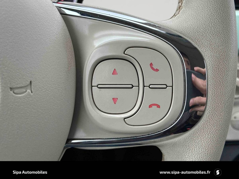 7 airbags : conducteur, passager, latéraux, aux fenêtres et aux genoux du conducteur / ABS - antiblocage des roues avec répartiteur de freinage EBD / Capote à ouverture électrique et lunette AR en verre à dégivrage électrique / Coques de rétroviseurs extérieurs couleur carrosserie / Détails chromés : baguettes de vitres latérales, poignées de porte intérieures, lame AV sous logo Fiat et le levier de vitesses / Direction assistée "DualDrive" et fonction "city" / Dispositif d'éclairage "Follow me home" / Eclairage du coffre / ESP avec système "Hill Holder" / Jantes alliage 15" New Lounge / Pare-chocs peints couleur carrosserie / Poignées de porte extérieures chromées / Sellerie tissu motifs Prince de Galles / Seuils de portes / Start&Stop : Système automatique d'allumage/extinction du moteur lors de courts arrêts / Système Link : Intégration Apple CarPlay et compatibilité Android Auto / Système Uconnect 7" HD LIVE (Dual Tuner/USB/Bluetooth) / Volant éco-cuir avec commandes de l'autoradio