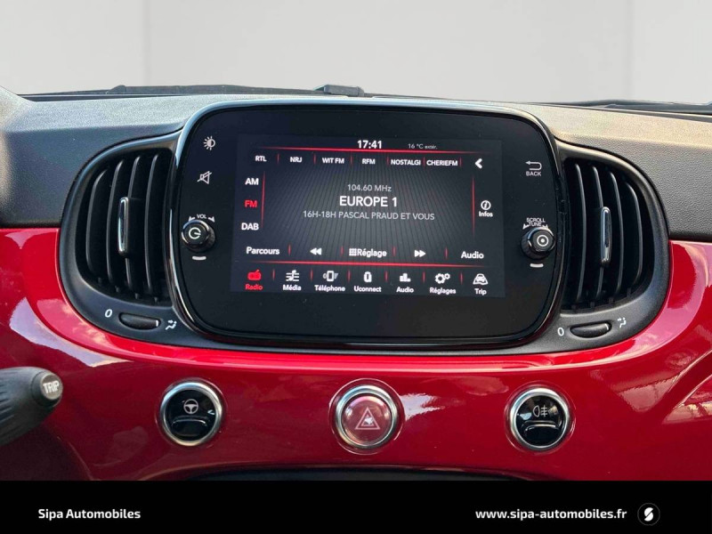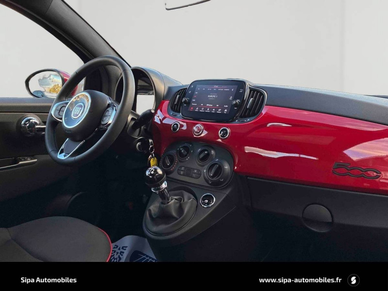 ABS - antiblocage des roues avec répartiteur de freinage EBD / Android Auto & Apple CarPlay / Combiné de bord analogique / Coques de rétroviseurs extérieurs rouges / Direction assistée "DualDrive" et fonction "city" / Eclairage du coffre / ESP - Contrôle électronique de stabilité avec aide au démarrage en côté "Hill Holder" / Jantes alliage 15" New Lounge / Kit (RED) :coque de clé, filtre à air, traitement antimicrobien, tapis de sol, distributeur poussoir / Logo 500 et cerclage de centre de roue rouge / Pare-chocs peints couleur carrosserie / Poignées de portes chromées / Sellerie Tissu Seaqual + Planche de bord rouge / Start&Stop : Système automatique d'allumage/extinction du moteur lors de courts arrêts / Système Uconnect 7" HD Live DAB / USB / Volant avec commandes de l'autoradio