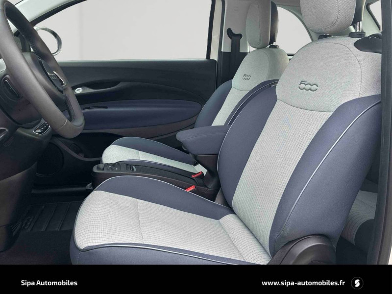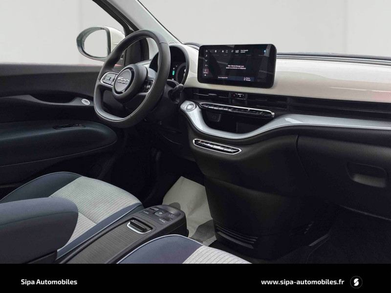 ABS - antiblocage des roues avec répartiteur de freinage EBD / Câble de recharde Mode 3 / Chargeur embarqué 11 kW triphasé / Coques de rétroviseurs couleur carroserie / Détails chromés : logo 500 sur calandre et logo FIAT sur hayon / ESP - Contrôle électronique de stabilité avec aide au démarrage en côté "Hill Holder" / Freinage autonome d'urgence avec détection de piéton et de cycliste / Frein à main électrique / Limiteur de vitesse intelligent avec reconnaissance des panneaux / Mopar Connect Box / Pare-chocs peints couleur carrosserie / Poignées de portes dissimulées / Prise charge rapide (85kW) / Système d'alerte sonore au piéton / Système d'infodivertissement Uconnect 10,25'? avec navigation