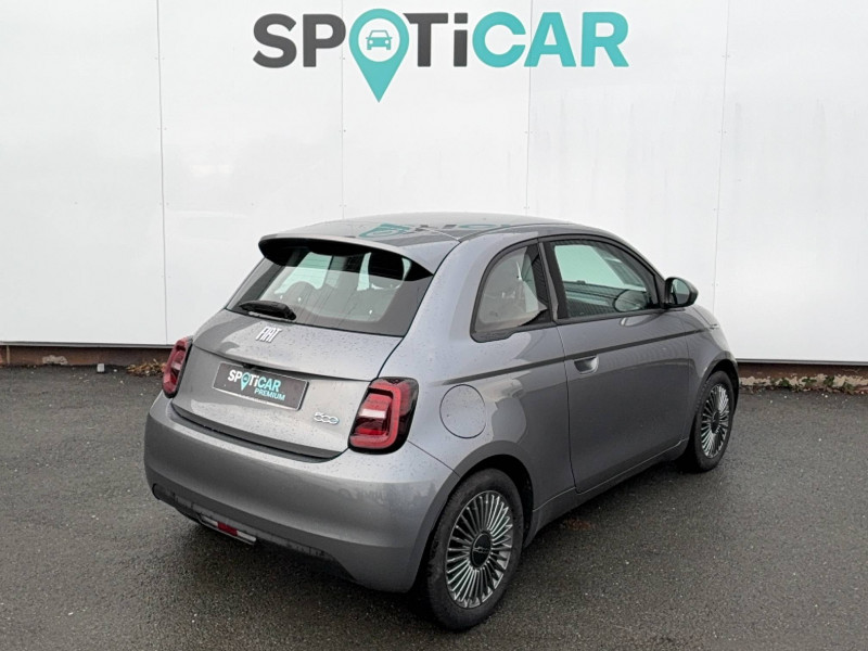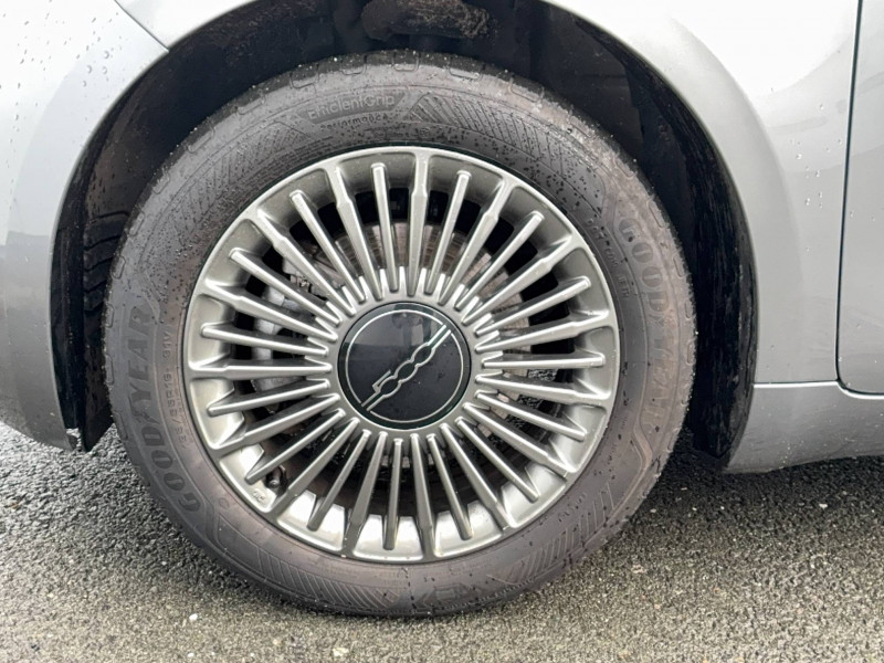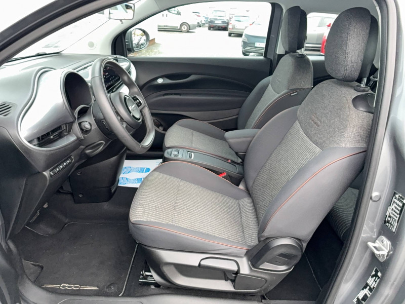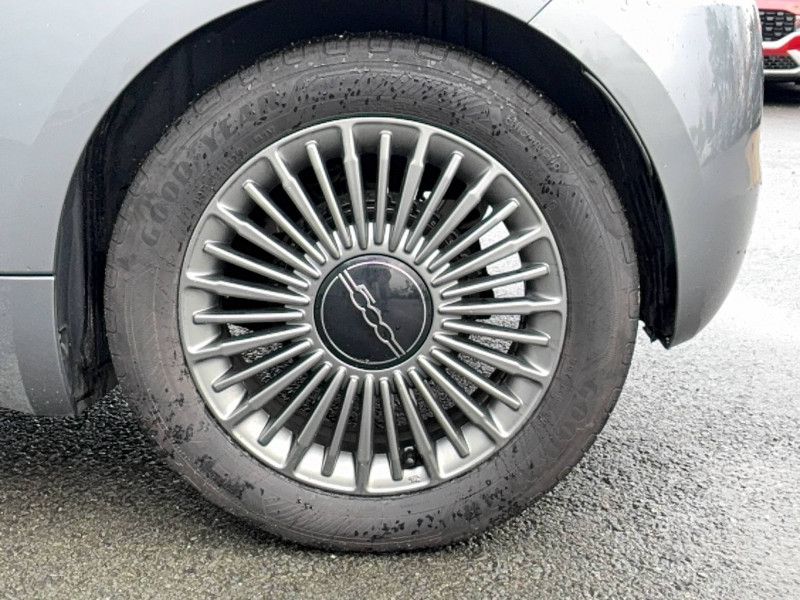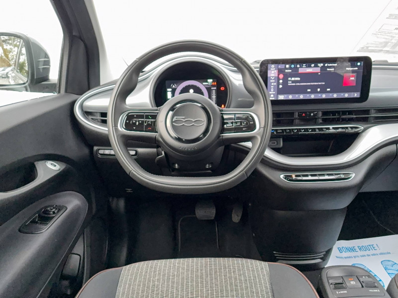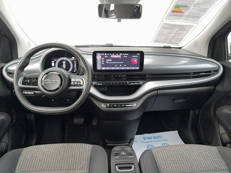 ABS - antiblocage des roues avec répartiteur de freinage EBD / Câble de recharge Mode 3 / Chargeur embarqué 11 kW triphasé / Coques de rétroviseurs couleur carroserie / Détails chromés : logo 500 sur calandre et logo FIAT sur hayon / ESP - Contrôle électronique de stabilité avec aide au démarrage en côté "Hill Holder" / Freinage autonome d'urgence avec détection de piéton et de cycliste / Frein à main électrique / Limiteur de vitesse intelligent avec reconnaissance des panneaux / Mopar Connect Box / Pare-chocs peints couleur carrosserie / Poignées de portes dissimulées / Prise charge rapide (85kW) / Système d'alerte sonore au piéton / Système d'infodivertissement Uconnect 10,25'? avec navigation