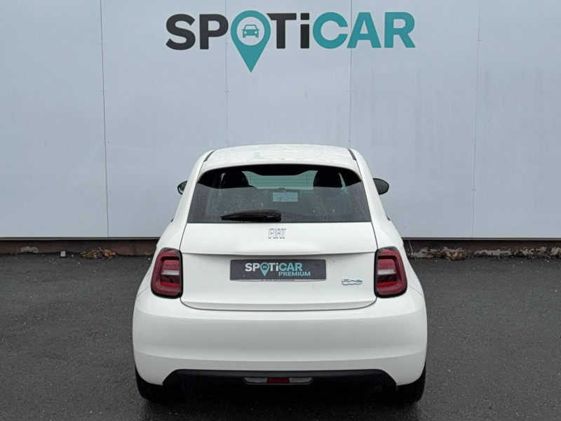 ABS - antiblocage des roues avec répartiteur de freinage EBD / Câble de recharge Mode 3 / Chargeur embarqué 11 kW triphasé / Coques de rétroviseurs couleur carroserie / Détails chromés : logo 500 sur calandre et logo FIAT sur hayon / ESP - Contrôle électronique de stabilité avec aide au démarrage en côté "Hill Holder" / Freinage autonome d'urgence avec détection de piéton et de cycliste / Frein à main électrique / Limiteur de vitesse intelligent avec reconnaissance des panneaux / Mopar Connect Box / Pare-chocs peints couleur carrosserie / Poignées de portes dissimulées / Prise charge rapide (85kW) / Système d'alerte sonore au piéton / Système d'infodivertissement Uconnect 10,25'? avec navigation
