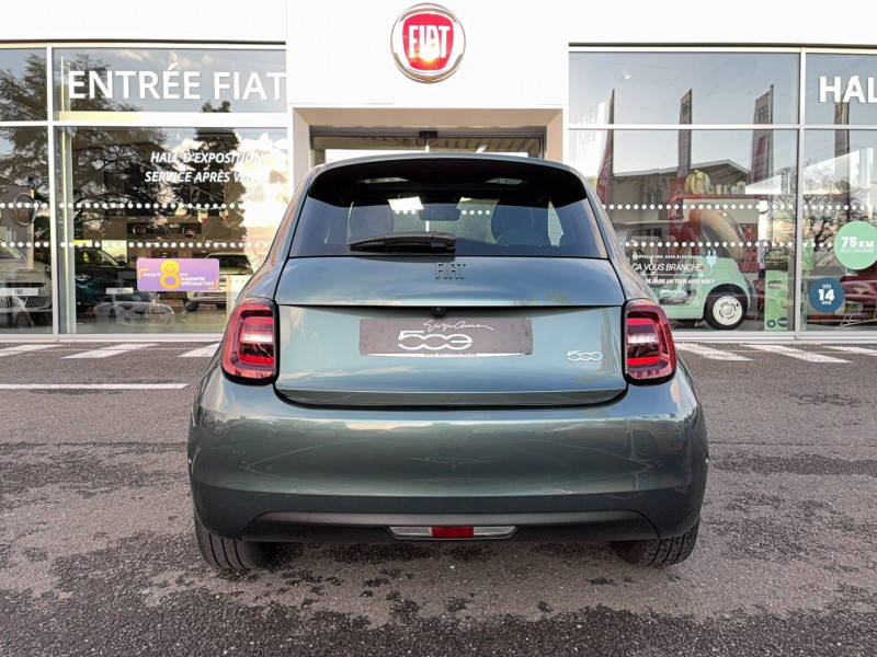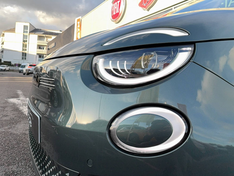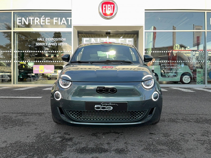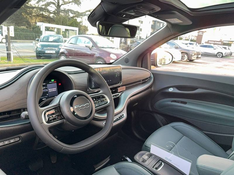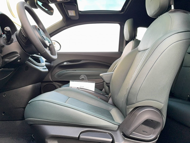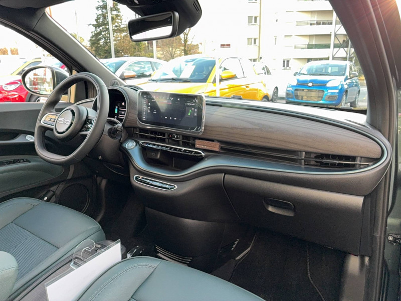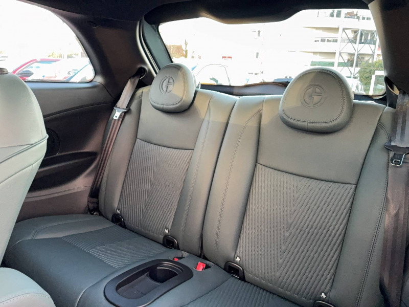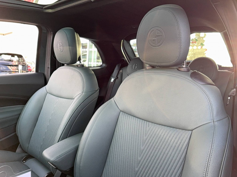 6 HP / ABS - antiblocage des roues avec répartiteur de freinage EBD / Baguettes latérales couleur carrosserie / Batterie 42 kWh / Câble de recharge Mode 3 / Chargeur à induction pour smartphone / Chargeur embarqué 11 kW (AC) / Conduite assistée de niveau 2 Régulateur auto-adaptatif intelligent, Maintien au centre de la voie du véhicule, Assistant aux embouteillages (Stop&Go) / Conduite One pedal / Contour tableau de bord argenté avec signature Giorgio Armani / Coques de rétroviseurs couleur carroserie / Détails chromés : logo 500 sur calandre et logo FIAT sur hayon / Ecran central 10,25'' NAV avec animation spécifique Giorgio Armani / Ecran couleur TFT 7" / Frein à main électrique / Jantes alliage 17" logo Giorgio Armani / Logo Giorgio Armanie incrusté sur appuie-tête / Moustaches couleur carrosserie / Ouverture sans clé côté conducteur / Pare-brise chauffant / Pare-chocs peints couleur carrosserie / Planche de bord texturée spécifique / Plaque sur Pilier C Giorgio Armani / Projecteurs AV full LED "Infinity" / Recharge rapide 85 kW (DC) / Réglage hauteur siège conducteur / Rétroviseur intérieur photochromatique / Sellerie Tissu Soft touch Greige + Planche de bord texturée / Seuils de portes avec signature Giorgio Armani / Système Audio premium JBL / Système d'alerte sonore au piéton / Système Uconnect 10,25'' avec navigation / Volant avec commandes / Volant noir soft touch