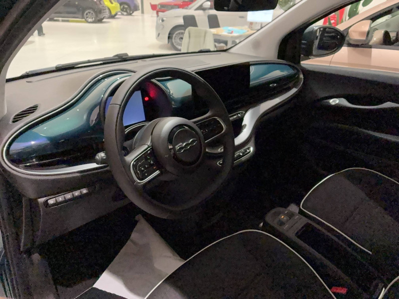 6 HP / ABS - antiblocage des roues avec répartiteur de freinage EBD / Batterie 23,8 kWh / Boîte de vitesse à fonction Continue / Câble de recharge Mode 3 / Chargeur embarqué 11 kW (AC) / Contrôle de la traction (TCS) / Frein à main électrique / Planche de bord couleur carroserie / Port USB type A-Csur tunnel central / Recharge rapide 50 kW (DC) / Sellerie tissu ''Jacquard'' bicolore noir et blanc / Support smartphone / Système U-Connect avec écran central 10.25" Pouces / TPMS / Volant soft touch noir