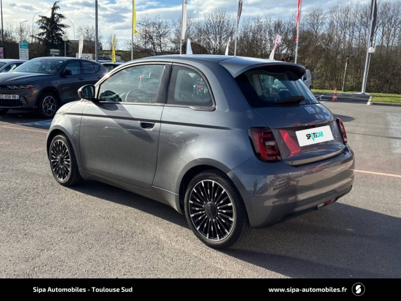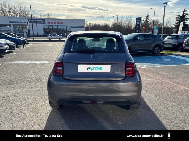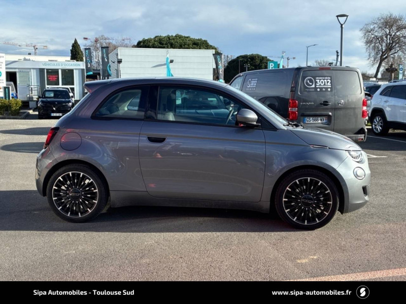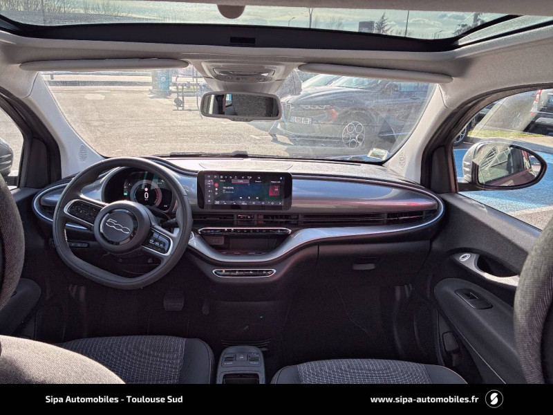 ABS - antiblocage des roues avec répartiteur de freinage EBD / Câble de recharge Mode 3 / Chargeur embarqué 11 kW triphasé / Coques de rétroviseurs couleur carroserie / Détails chromés : logo 500 sur calandre et logo FIAT sur hayon / ESP - Contrôle électronique de stabilité avec aide au démarrage en côté "Hill Holder" / Freinage autonome d'urgence avec détection de piéton et de cycliste / Frein à main électrique / Limiteur de vitesse intelligent avec reconnaissance des panneaux / Mopar Connect Box / Pare-chocs peints couleur carrosserie / Poignées de portes dissimulées / Prise charge rapide (85kW) / Système d'alerte sonore au piéton / Système d'infodivertissement Uconnect 10,25'? avec navigation