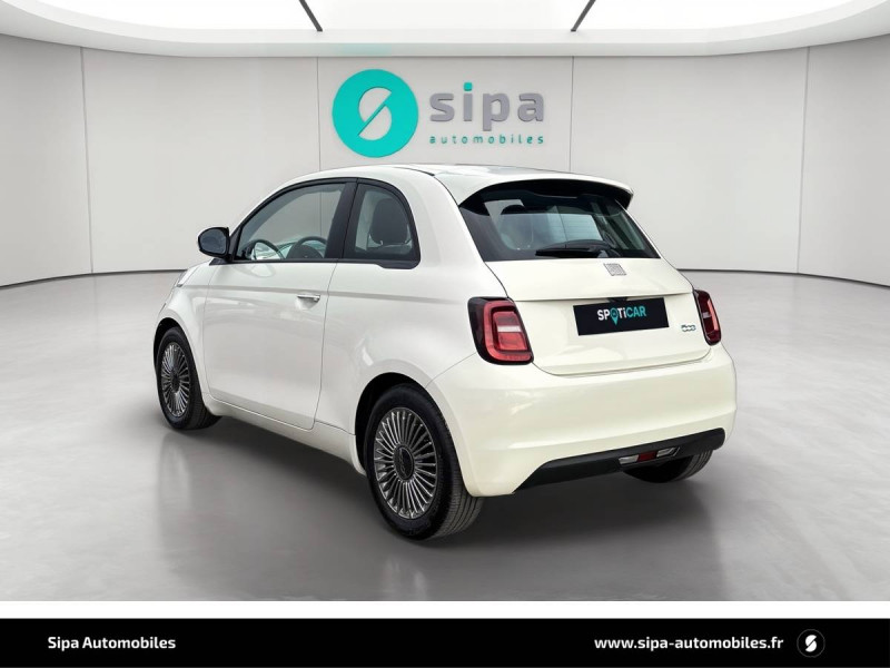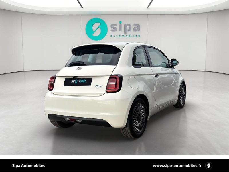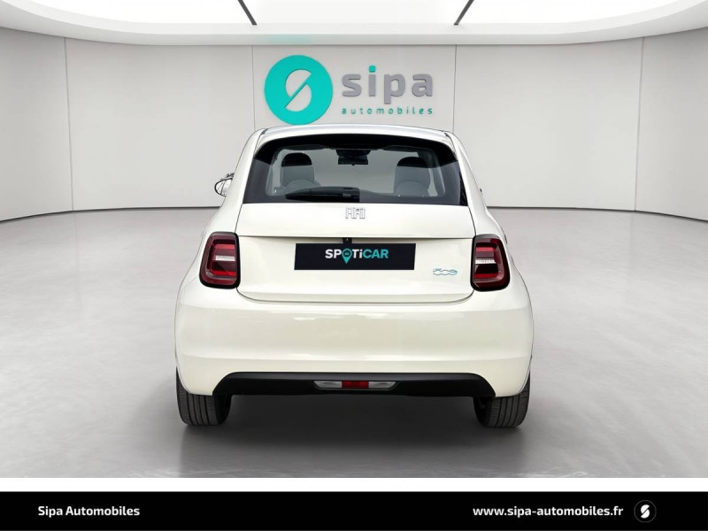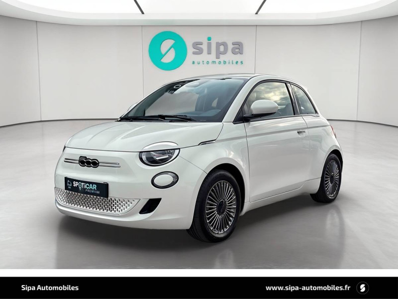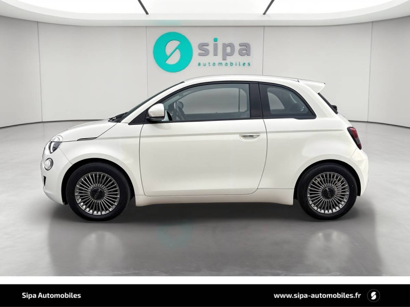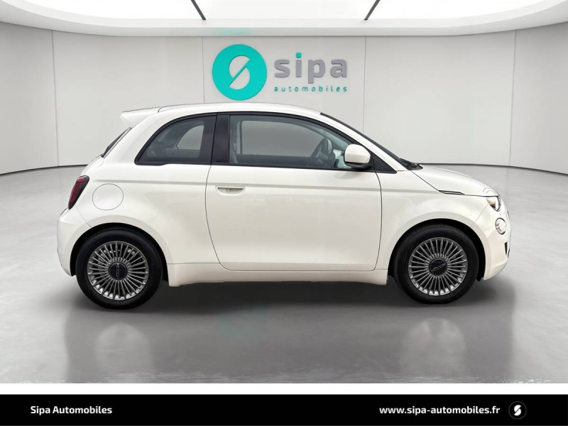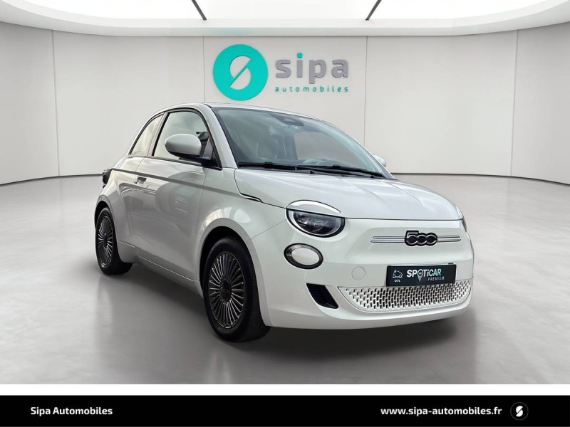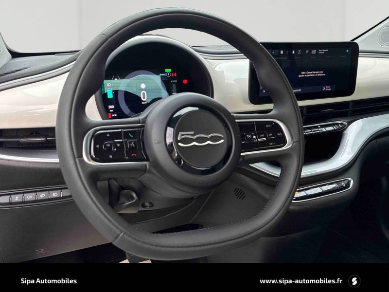 ABS - antiblocage des roues avec répartiteur de freinage EBD / Câble de recharde Mode 3 / Chargeur embarqué 11 kW triphasé / Coques de rétroviseurs couleur carroserie / Détails chromés : logo 500 sur calandre et logo FIAT sur hayon / ESP - Contrôle électronique de stabilité avec aide au démarrage en côté "Hill Holder" / Freinage autonome d'urgence avec détection de piéton et de cycliste / Frein à main électrique / Limiteur de vitesse intelligent avec reconnaissance des panneaux / Mopar Connect Box / Pare-chocs peints couleur carrosserie / Poignées de portes dissimulées / Prise charge rapide (85kW) / Système d'alerte sonore au piéton / Système d'infodivertissement Uconnect 10,25'? avec navigation