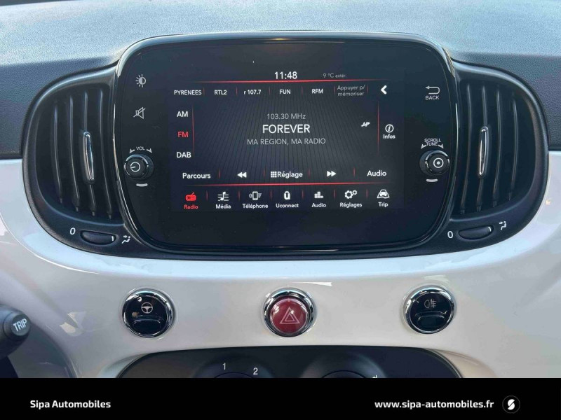 ABS - antiblocage des roues avec répartiteur de freinage EBD / Android Auto & Apple CarPlay / Capote à ouverture électrique et lunette AR en verre à dégivrage électrique / Coques de rétroviseurs couleur carroserie / Détails chromés sur calandre AV avec inserts chromées et lame AR / Direction assistée "DualDrive" et fonction "city" / Eclairage du coffre / ESP - Contrôle électronique de stabilité avec aide au démarrage en côté "Hill Holder" / Jantes alliage 15" New Lounge / Pare-chocs peints couleur carrosserie / Planche de bord couleur carroserie / Poignées de portes chromées / Start&Stop : Système automatique d'allumage/extinction du moteur lors de courts arrêts / Système Uconnect 7" HD Live DAB / USB / Volant avec commandes de l'autoradio
