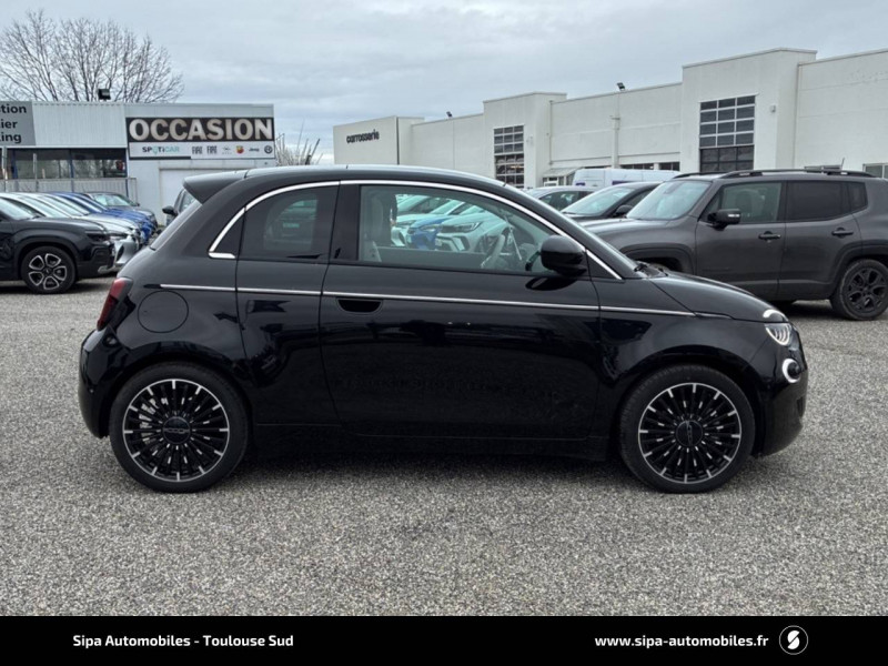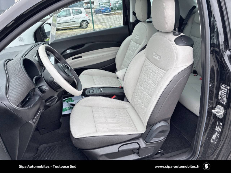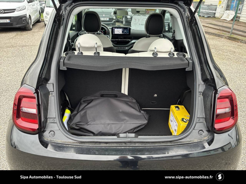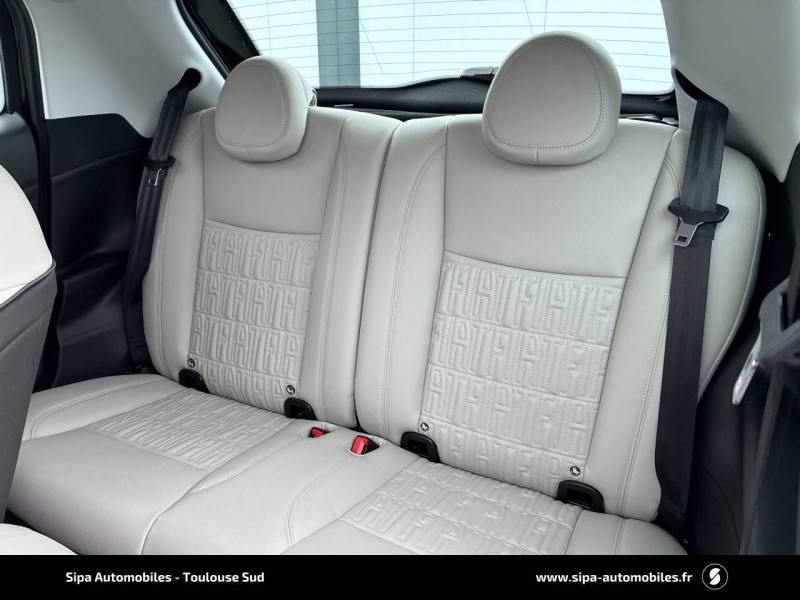 6 HP / ABS - antiblocage des roues avec répartiteur de freinage EBD / Batterie 42 kWh / Câble de recharge Mode 3 / Chargeur embarqué 11 kW (AC) / Coques de rétroviseurs couleur carroserie / Détails chromés : logo 500 sur calandre et logo FIAT sur hayon / Ecran couleur TFT 7" / Frein à main électrique / Pare-chocs peints couleur carrosserie / Planche de bord spécifique / Poignées de portes dissimulées / Projecteurs AV full LED "Infinity" / Recharge rapide 85 kW (DC) / Rétroviseur intérieur photochromatique / Sellerie premium ivoire soft / Système d'alerte sonore au piéton / Système U-Connect 10,25" (sans NAV) / Volant avec commandes / Volant bicolore soft touch