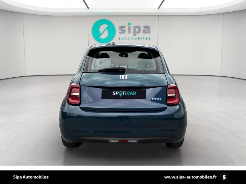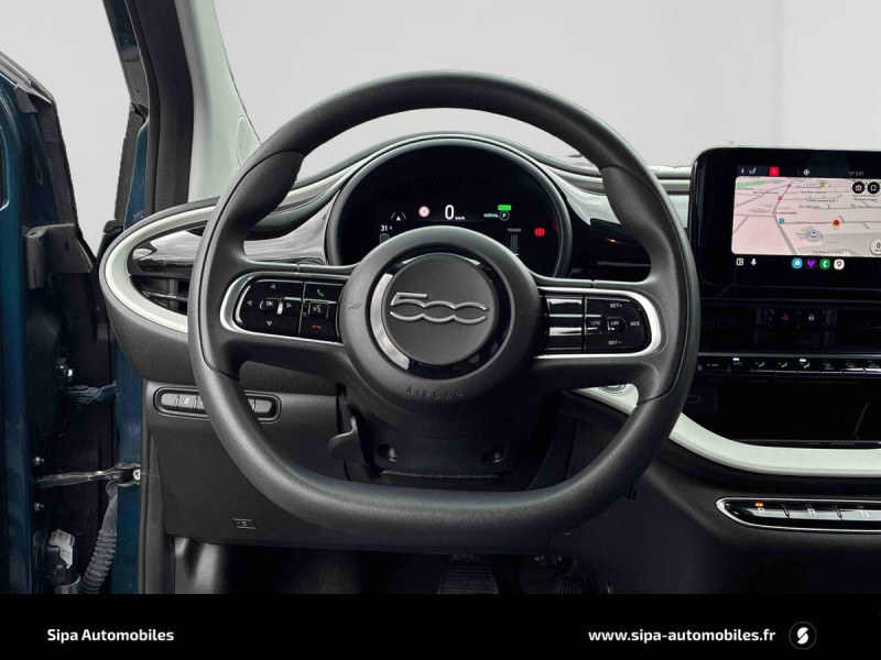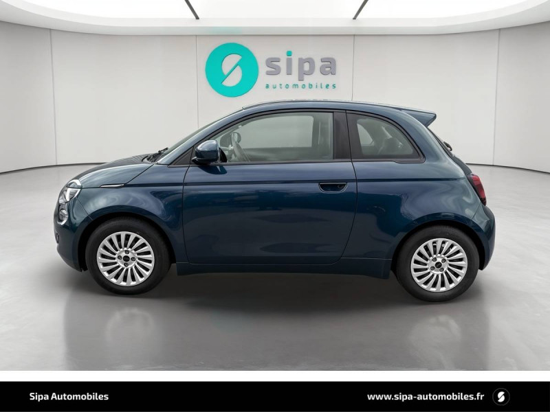 ABS - antiblocage des roues avec répartiteur de freinage EBD / Câble de recharge Mode 3 / Chargeur à induction pour smartphone / Chargeur embarqué 11 kW triphasé / Coques de rétroviseurs couleur carroserie / Détails chromés : logo 500 sur calandre et logo FIAT sur hayon / ESP - Contrôle électronique de stabilité avec aide au démarrage en côté "Hill Holder" / Freinage autonome d'urgence avec détection de piéton et de cycliste / Frein à main électrique / Pack Radio Hiver (Action Plus) / Pare-chocs peints couleur carrosserie / Poignées de portes dissimulées / Prise charge rapide (50kW) / Support smartphone / Système d'alerte sonore au piéton / Volant avec commandes