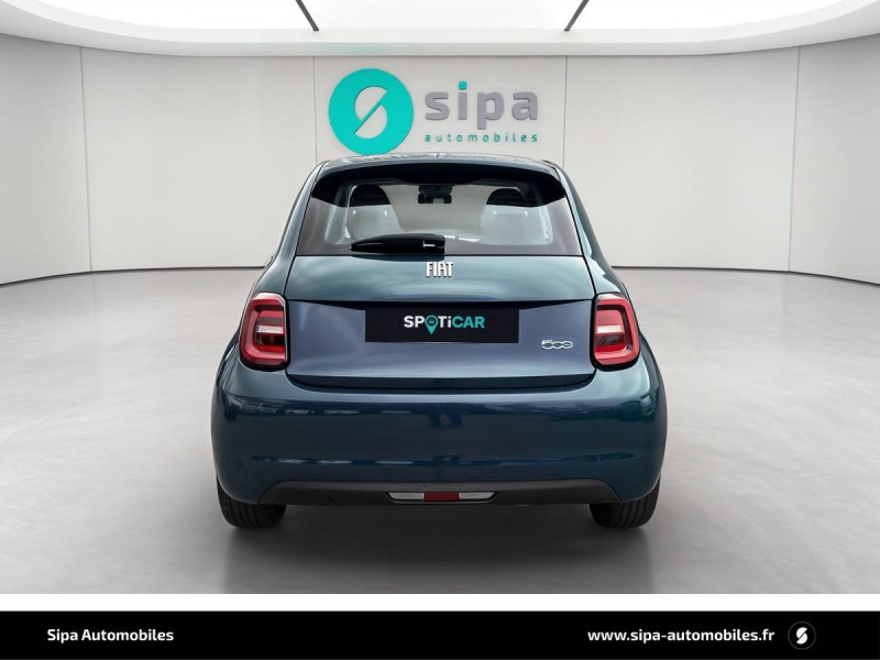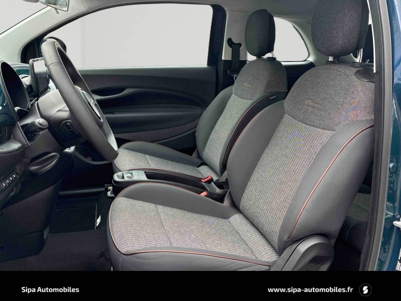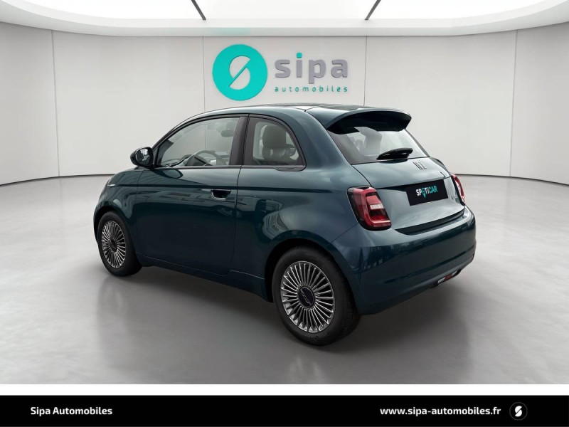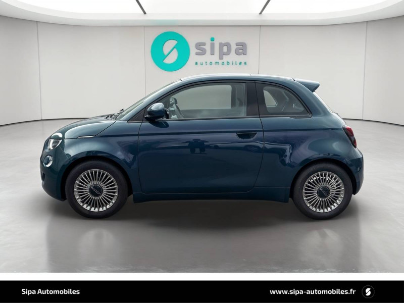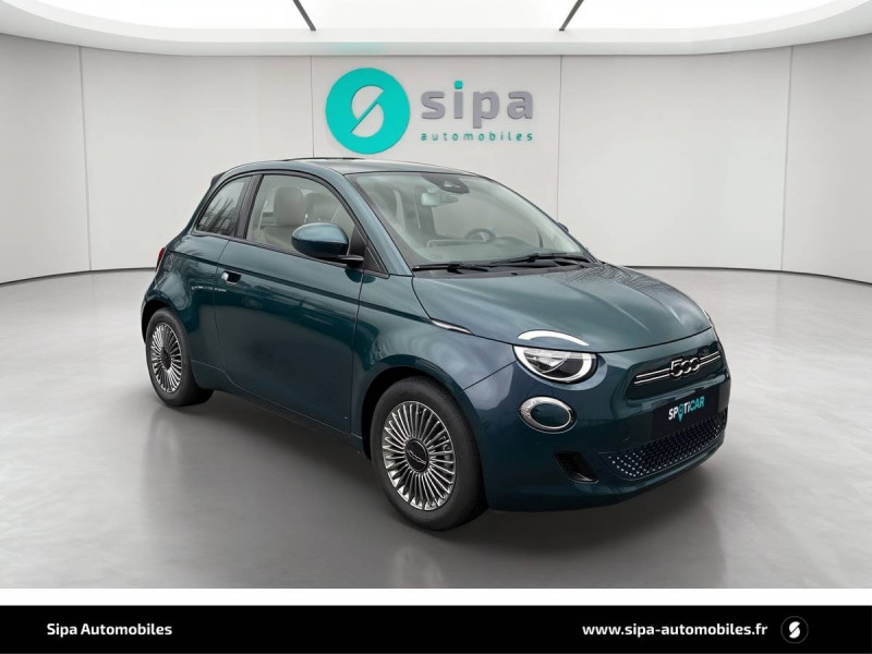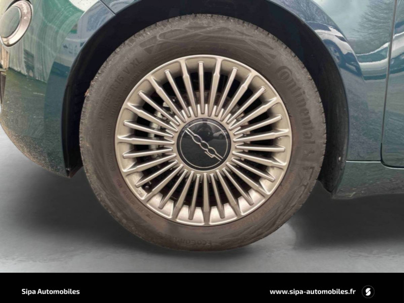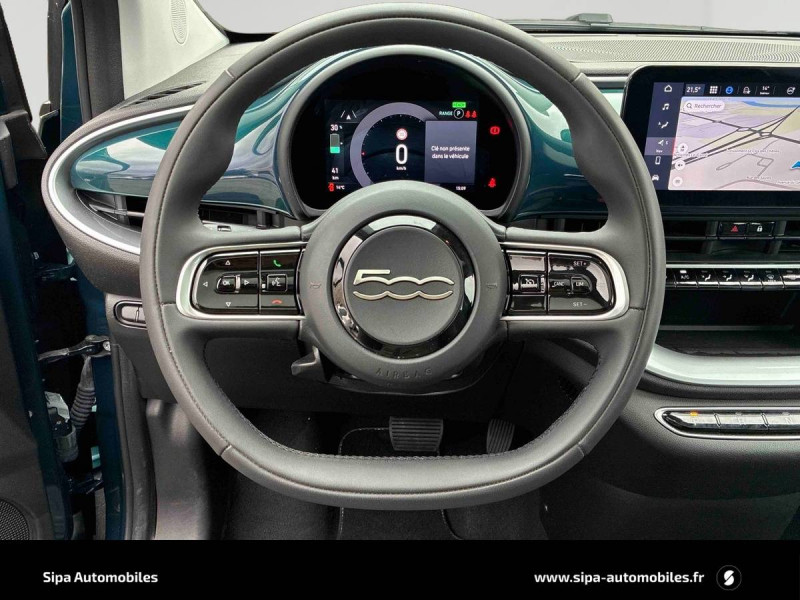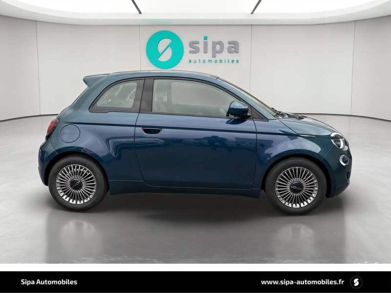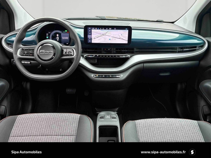 ABS - antiblocage des roues avec répartiteur de freinage EBD / Câble de recharge Mode 3 / Chargeur embarqué 11 kW triphasé / Coques de rétroviseurs couleur carroserie / Détails chromés : logo 500 sur calandre et logo FIAT sur hayon / ESP - Contrôle électronique de stabilité avec aide au démarrage en côté "Hill Holder" / Freinage autonome d'urgence avec détection de piéton et de cycliste / Frein à main électrique / Limiteur de vitesse intelligent avec reconnaissance des panneaux / Mopar Connect Box / Pare-chocs peints couleur carrosserie / Poignées de portes dissimulées / Prise charge rapide (50kW) / Système d'alerte sonore au piéton / Système d'infodivertissement Uconnect 10,25'? avec navigation