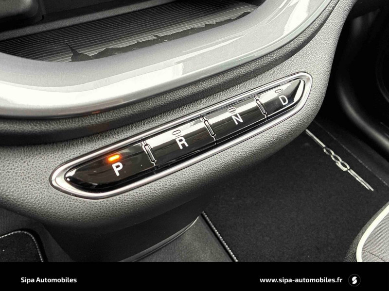 6 HP / ABS - antiblocage des roues avec répartiteur de freinage EBD / Batterie 23,8 kWh / Boîte de vitesse à fonction Continue / Câble de recharge Mode 3 / Chargeur embarqué 11 kW (AC) / Contrôle de la traction (TCS) / Coques de rétroviseurs couleur carroserie / Frein à main électrique / Planche de bord couleur carroserie / Recharge rapide 50 kW (DC) / Sellerie Tissu noir + Planche de bord couleur carrosserie / Support smartphone / Système U-Connect 10,25" (sans NAV) / TPMS / Volant bicolore soft touch